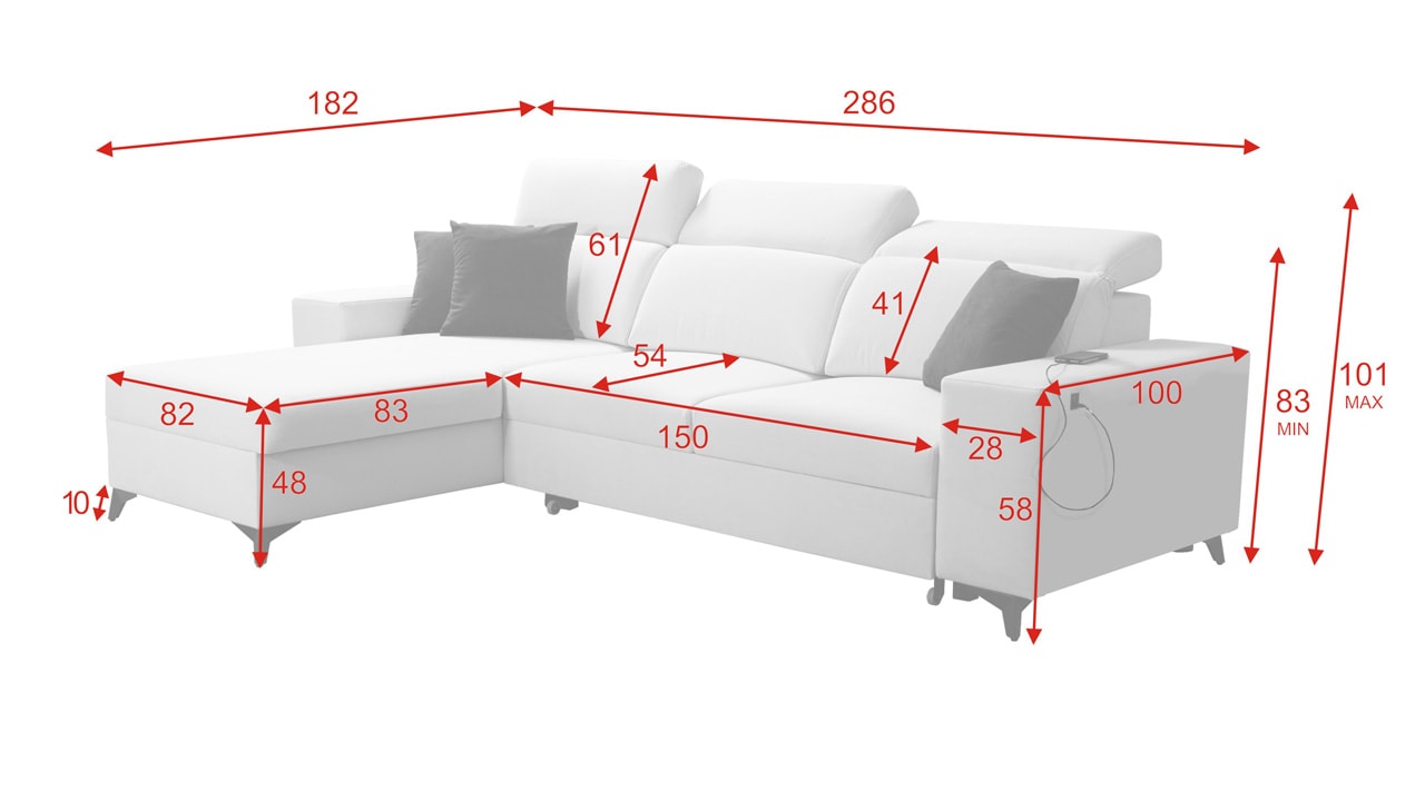 Ideálna rohová pohovka na oddych a leňošenie. Má polohovateľné opierky hlavy, úložný priestor a vstavané rozkladacie lôžko. Výhodou je tiež zabudovaný USB port na nabíjanie, vďaka čomu môžete mať mobil alebo tablet vždy po ruke. Sedačku vám ponúkame s možnosťou vlastného výberu poťahového materiálu, aby ulahodila vášmu oku a zapadla do štýlu vašej domácnosti. Ozdobné vankúšiky máte od nás grátis.