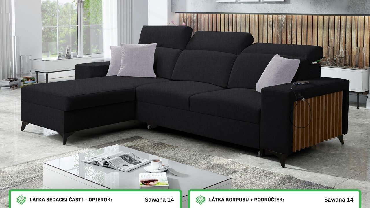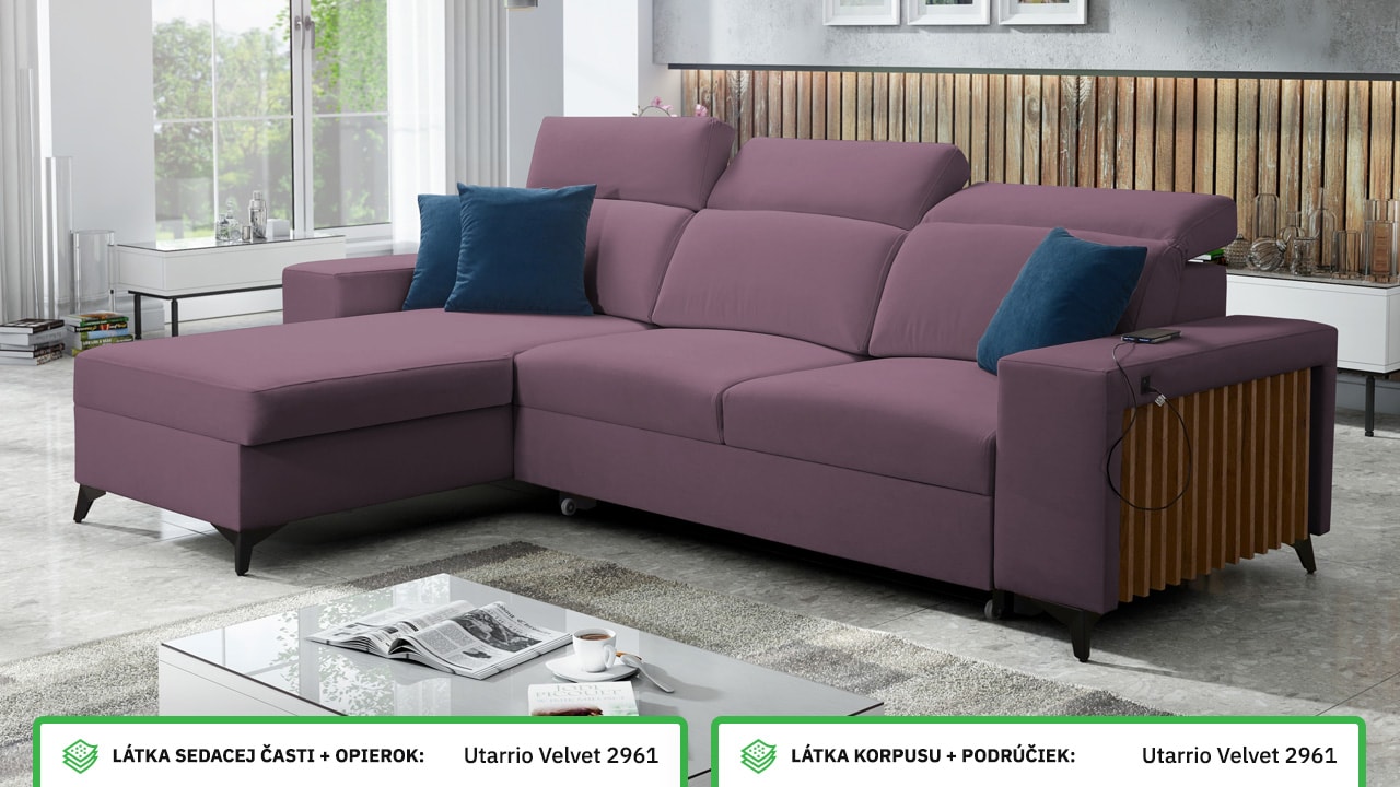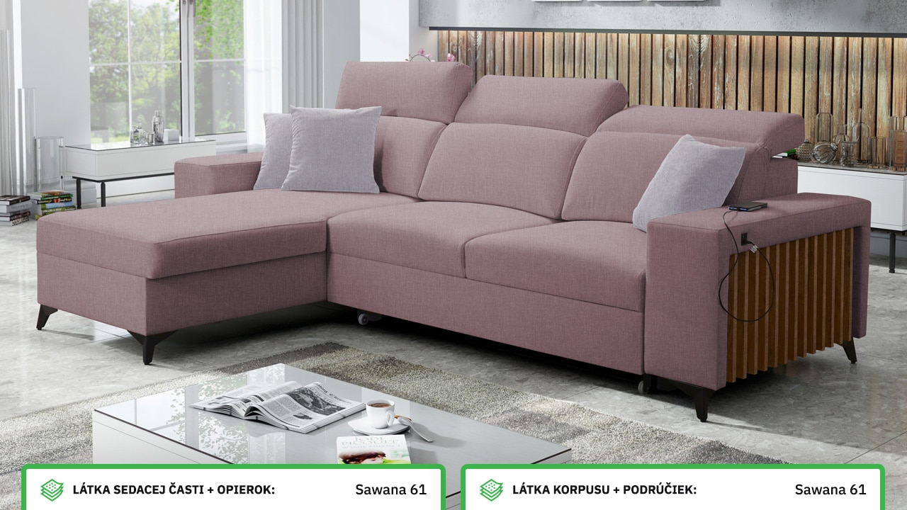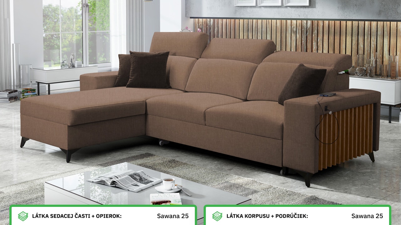Menšia rohová sedačka, ktorá ale určite splní vaše očakávania. Spája v sebe moderný dizajn, kvalitu výroby, praktické funkcie aj pohodlie pri sedení. Z dizajnového hľadiska je doplnená o zaujímavý drevený detail, ktorý z nej robí mimoriadne štýlový kúsok. Kvalitu zase zaručia pevné a odolné materiály, vďaka čomu sedačka ostáva dlhé roky ako nová. K vášmu pohodliu poslúžia polohovateľné opierky hlavy a komfortný sed. Na záver určite oceníte aj veľký úložný priestor, možnosť rozkladania a vstavanú nabíjaciu stanicu.