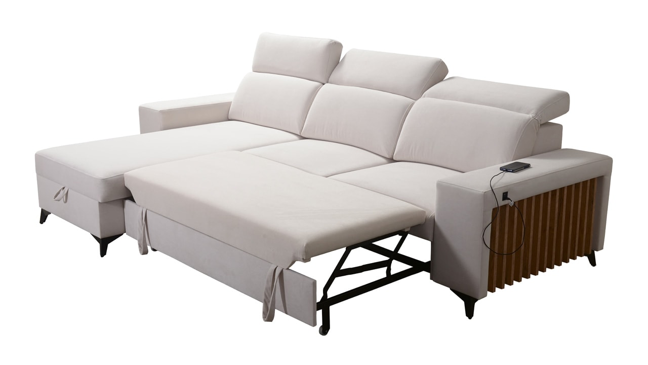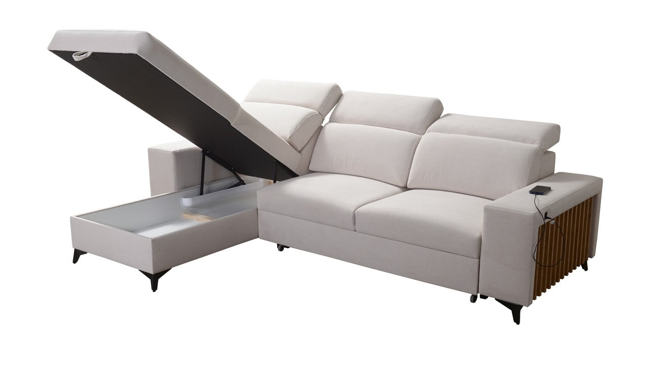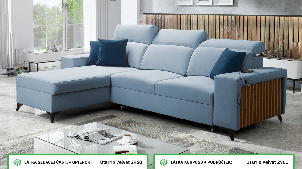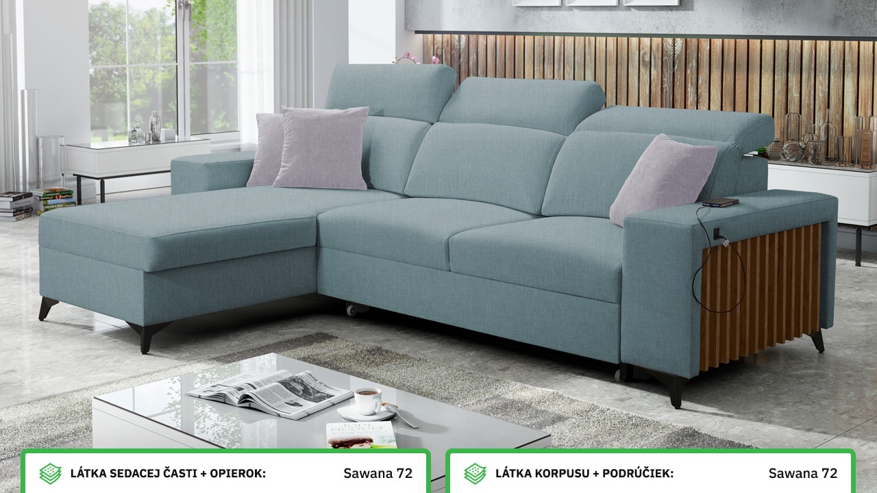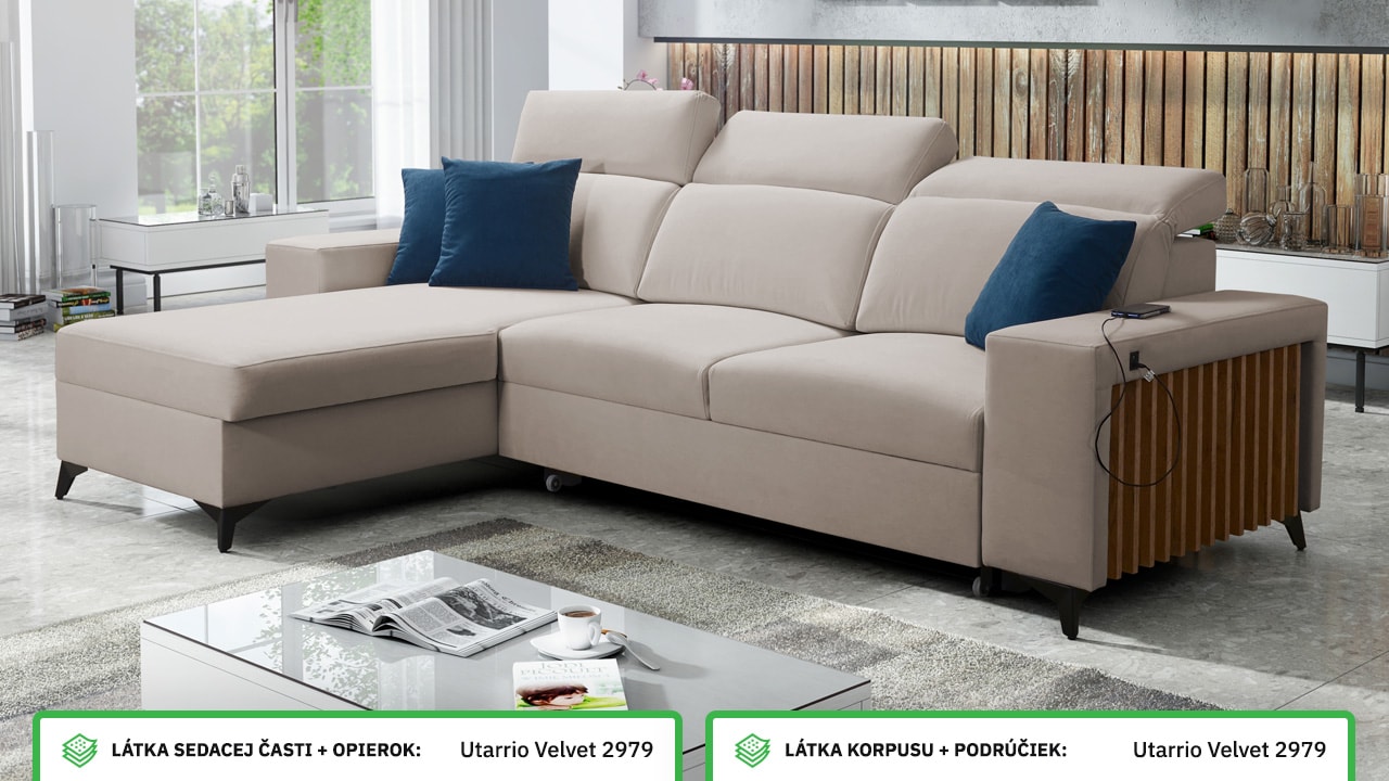 Menšia rohová sedačka, ktorá ale určite splní vaše očakávania. Spája v sebe moderný dizajn, kvalitu výroby, praktické funkcie aj pohodlie pri sedení. Z dizajnového hľadiska je doplnená o zaujímavý drevený detail, ktorý z nej robí mimoriadne štýlový kúsok. Kvalitu zase zaručia pevné a odolné materiály, vďaka čomu sedačka ostáva dlhé roky ako nová. K vášmu pohodliu poslúžia polohovateľné opierky hlavy a komfortný sed. Na záver určite oceníte aj veľký úložný priestor, možnosť rozkladania a vstavanú nabíjaciu stanicu.