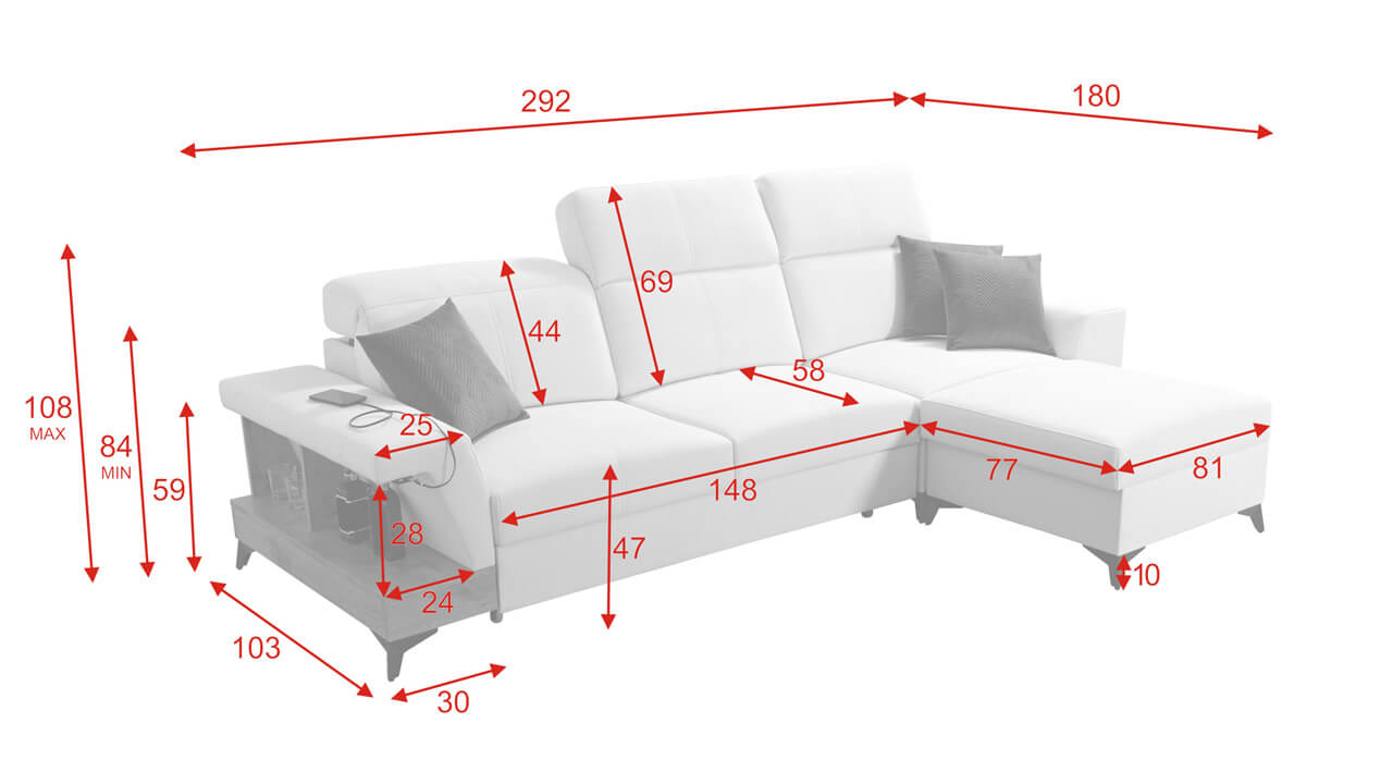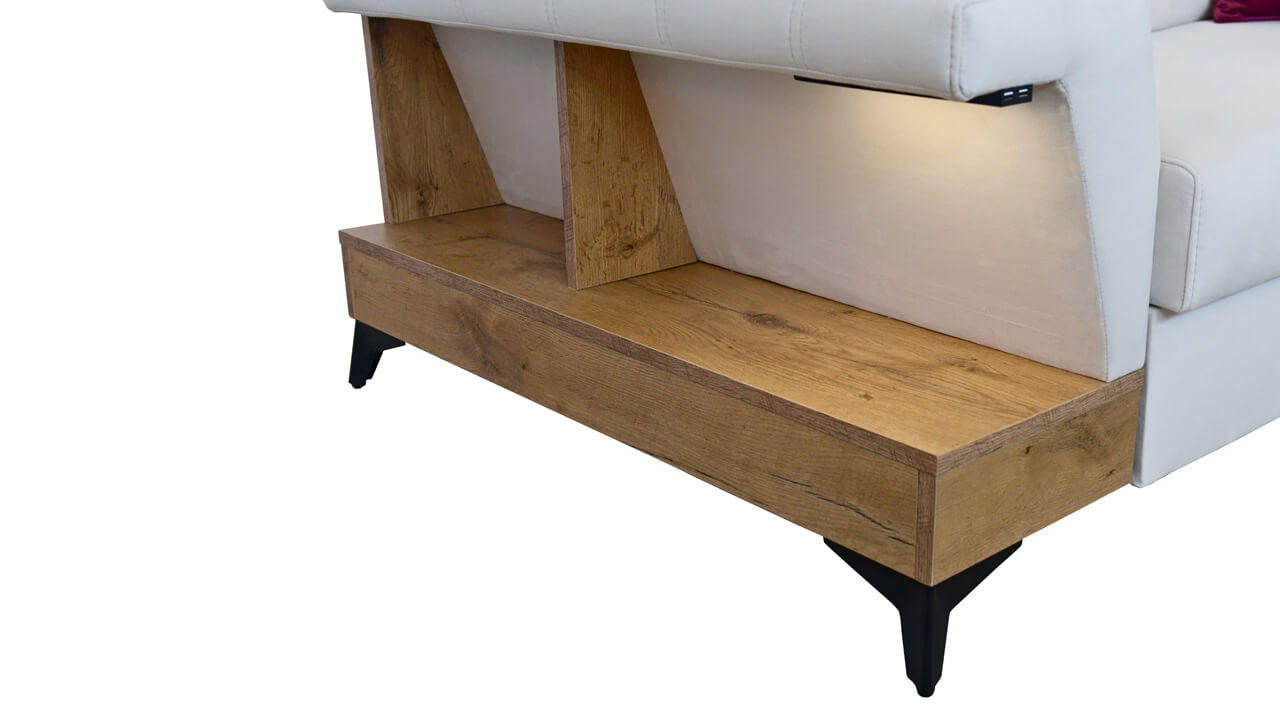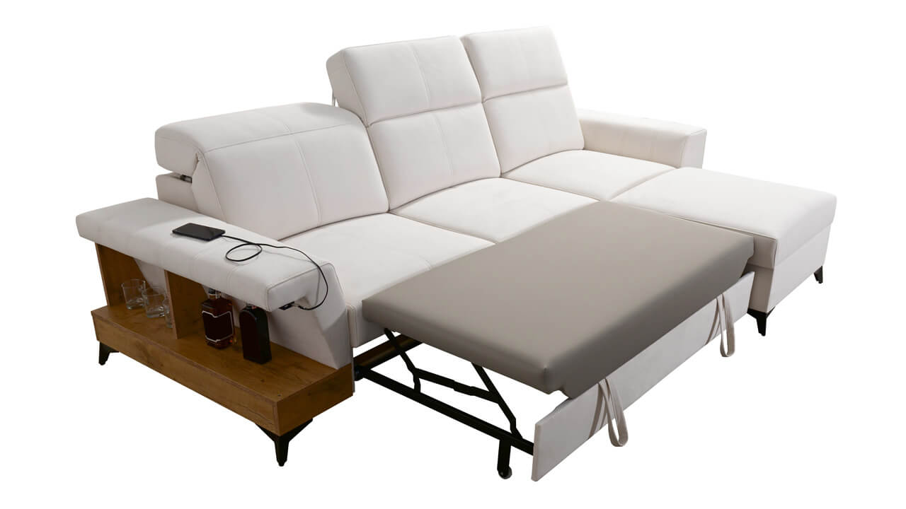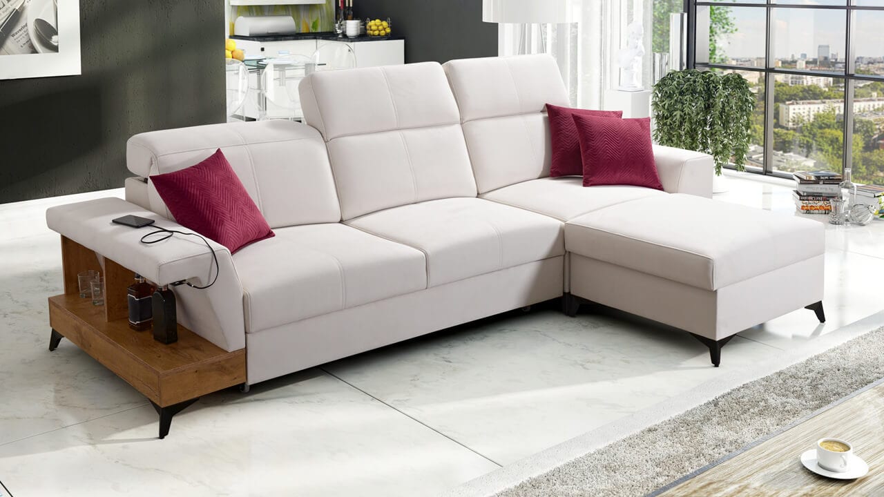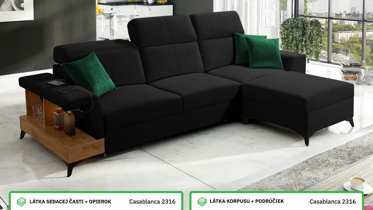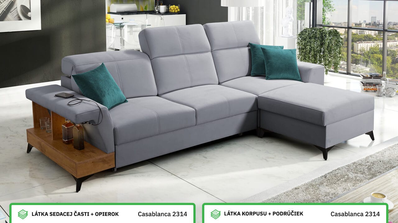Kvalitná rohová sedačka so zaujímavým praktickým aj dizajnovým prvkom vstavaného minibaru. Je vybavená polohovateľnými opierkami hlavy, možnosťou rozloženia, úložným priestorom a USB portami na nabíjanie. Aj napriek jej menším rozmerom vám poskytne maximálne pohodlie. Hodí sa do menších obývačiek či panelákových bytov. Prejdite na konfigurátor a vyberte si ju vo farbe a poťahu podľa vlastných preferencií.