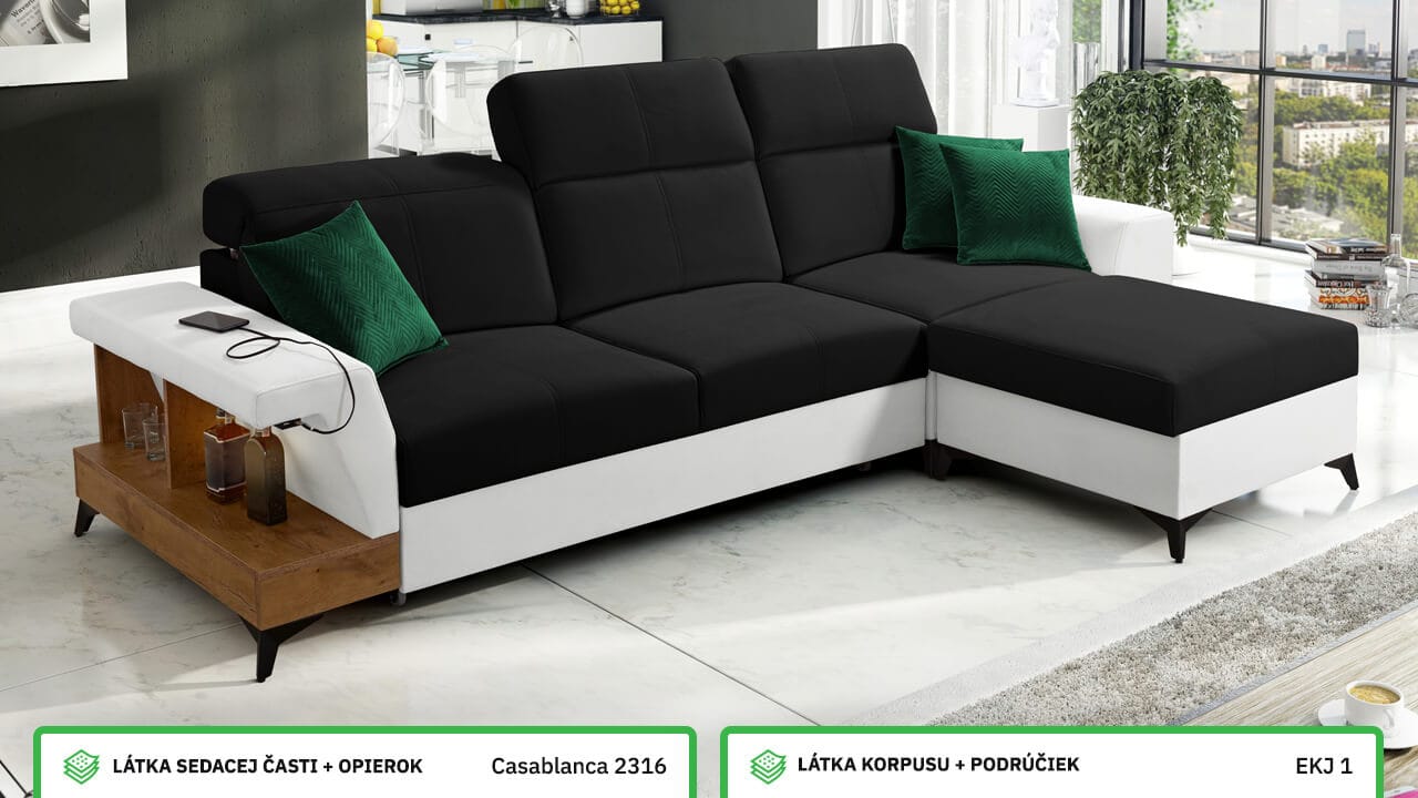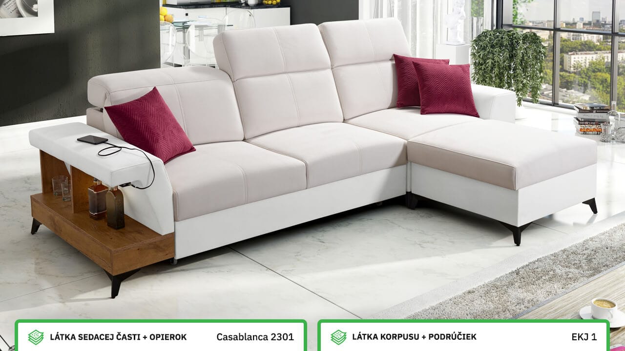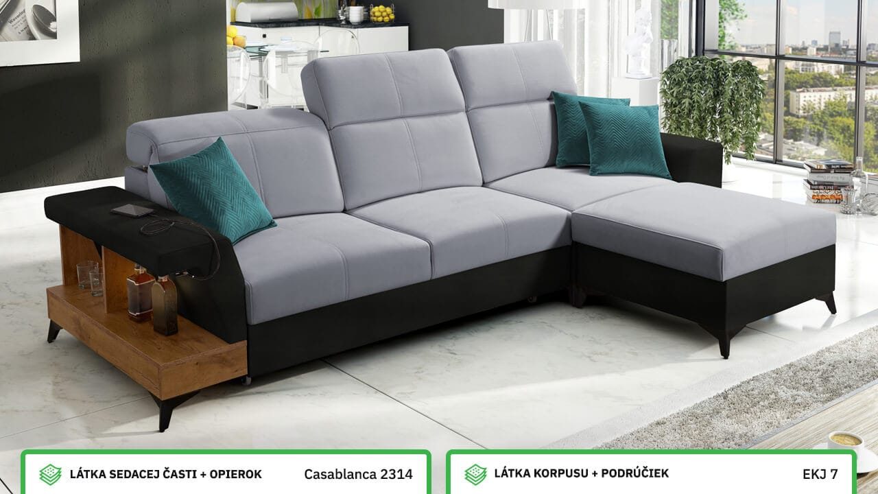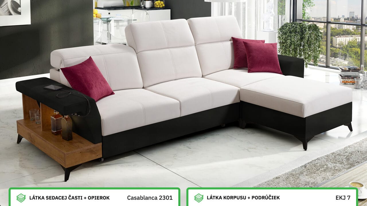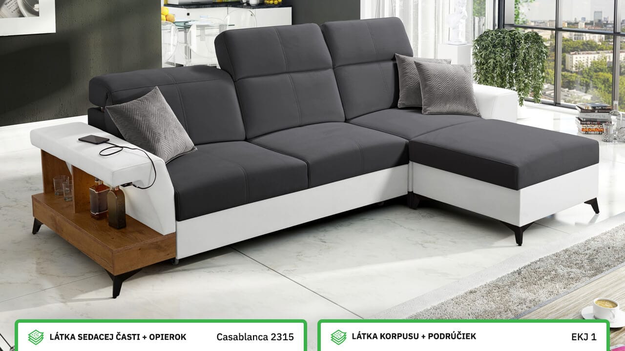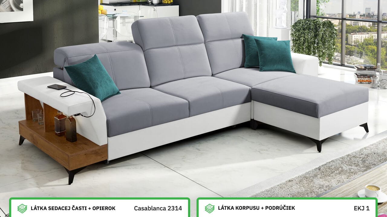 V našom konfigurátore si veľmi jednoducho nadizajnujete vašu novú sedačku. Najprv vás čaká výber rohu, a potom si zvolíte požadovanú poťahovú látku sedacej časti a korpusu. V posledných krokoch si vyberáte vzor vankúšov, typ doplnkov a nožičiek. Celý konfigurátor je dostatočne prehľadný, aby ste si svoju novú sedaciu súpravu navrhli presne podľa vašich predstáv.