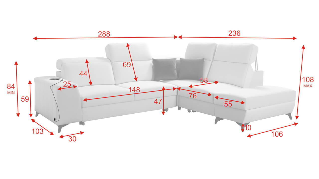 Rohová sedačka BELUTI VII MIX sa so svojím nadčasovým dizajnom bude hodiť do obývačiek rôznych štýlov. Nikdy nevyjde z módy a vďaka pevnej konštrukcii a kvalitnému prevedeniu sa nevysedí ani po rokoch. Má kvalitný vnútorný matrac, pevné šitie, úložný priestor, nastaviteľné opierky hlavy a dá sa roztiahnuť. Výhodou sú tiež vstavané USB porty na nabíjanie, s ktorými budete mať svoj mobil či tablet vždy na dosah.