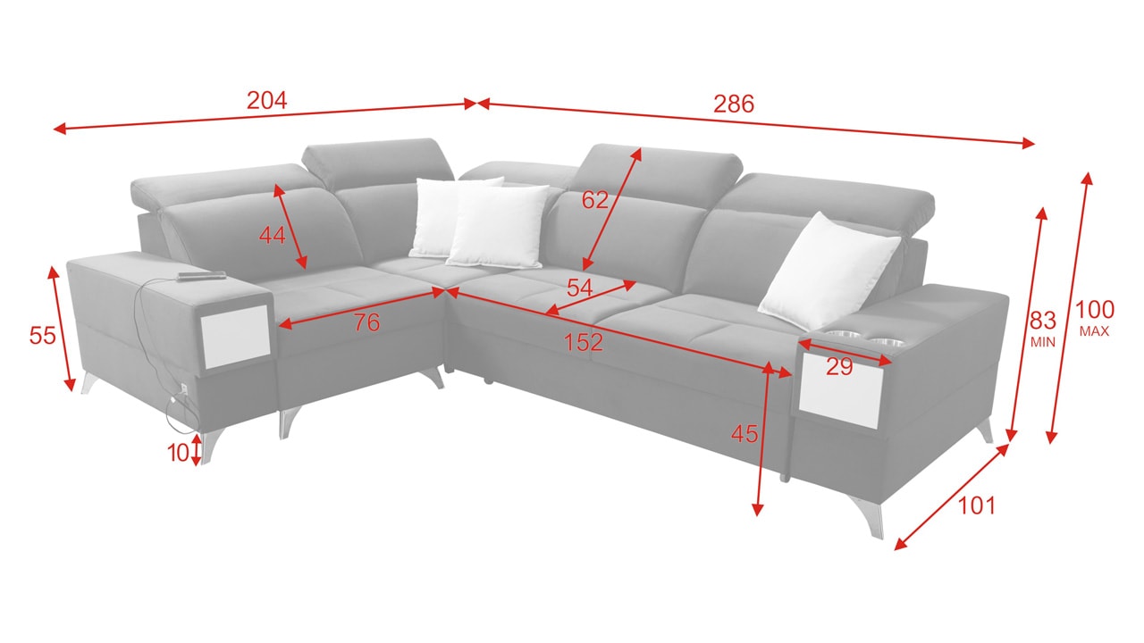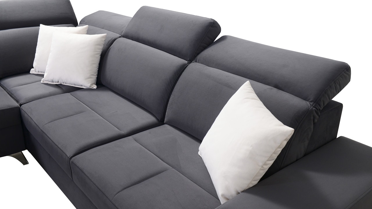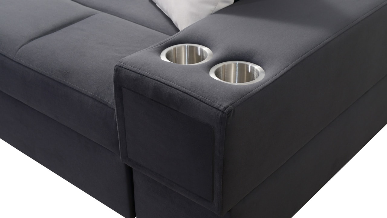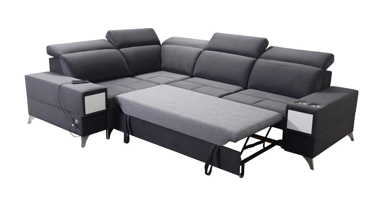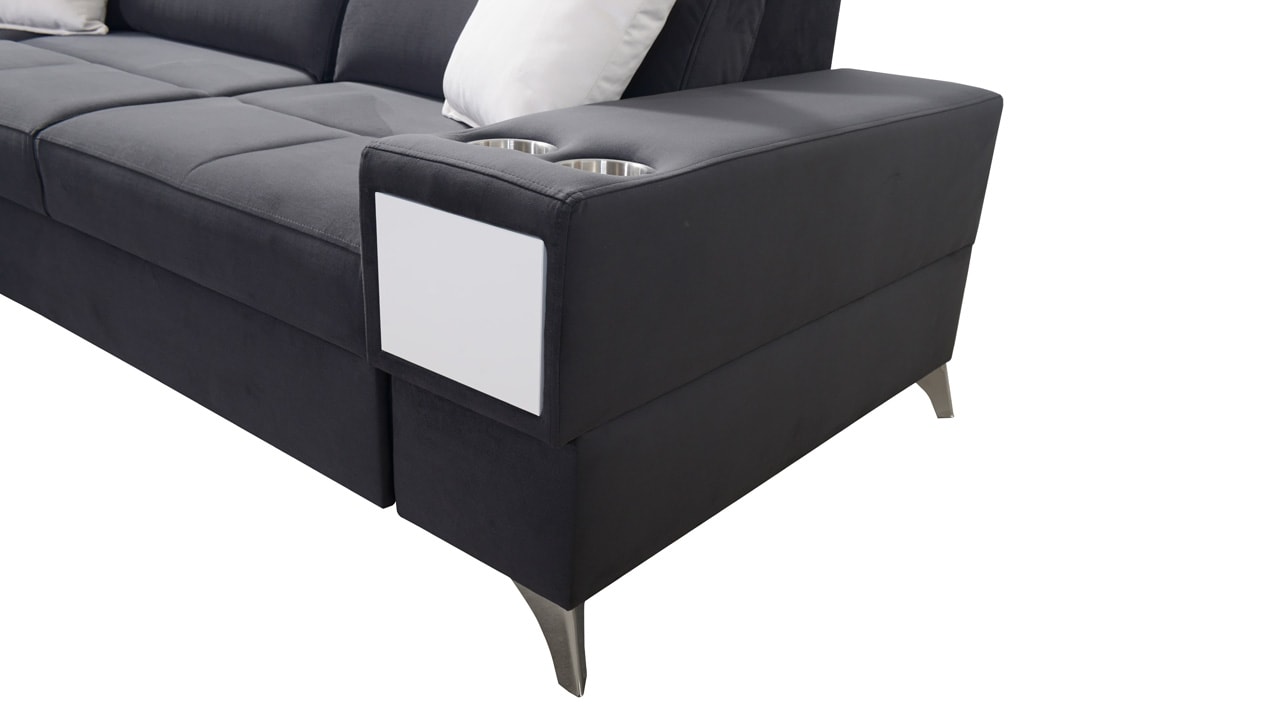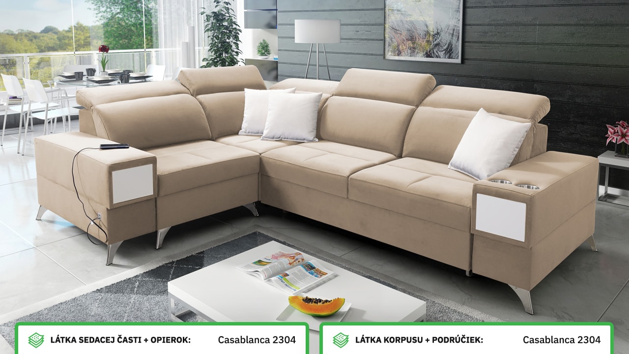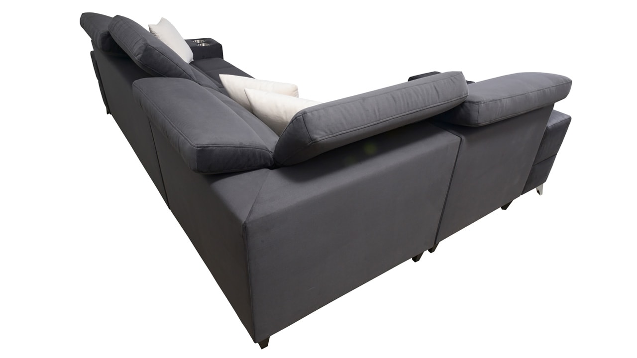 S touto praktickou rohovou sedačkou hravo vyčaríte pohodlné sedenie v obývačke, detskej izbe aj v kancelárii. Jej prednosťou je úložný priestor a vstavaný šuplík, umiestnený v bočnej opierke. Výhodou sú tiež držiaky na poháre, nastaviteľné opierky hlavy a USB porty určené na nabíjanie mobilu. Dizajn sedačky si do veľkej miery môžete prispôsobiť vašim predstavám. V našom konfigurátore si totiž sami nakombinujete farbu poťahu, typ nožičiek aj dizajn šuplíka.