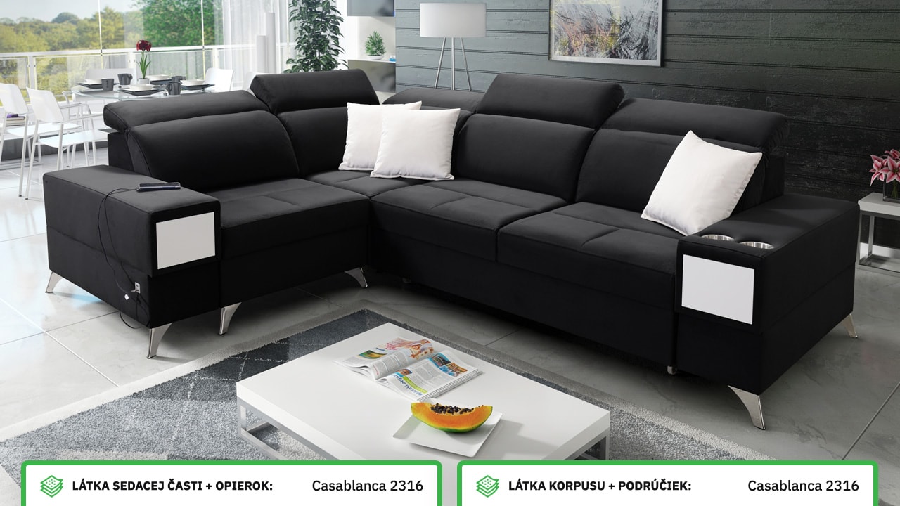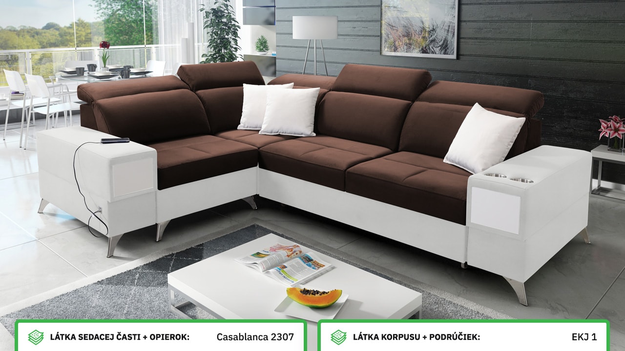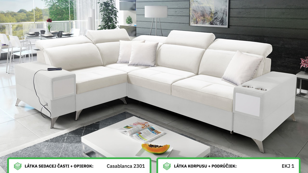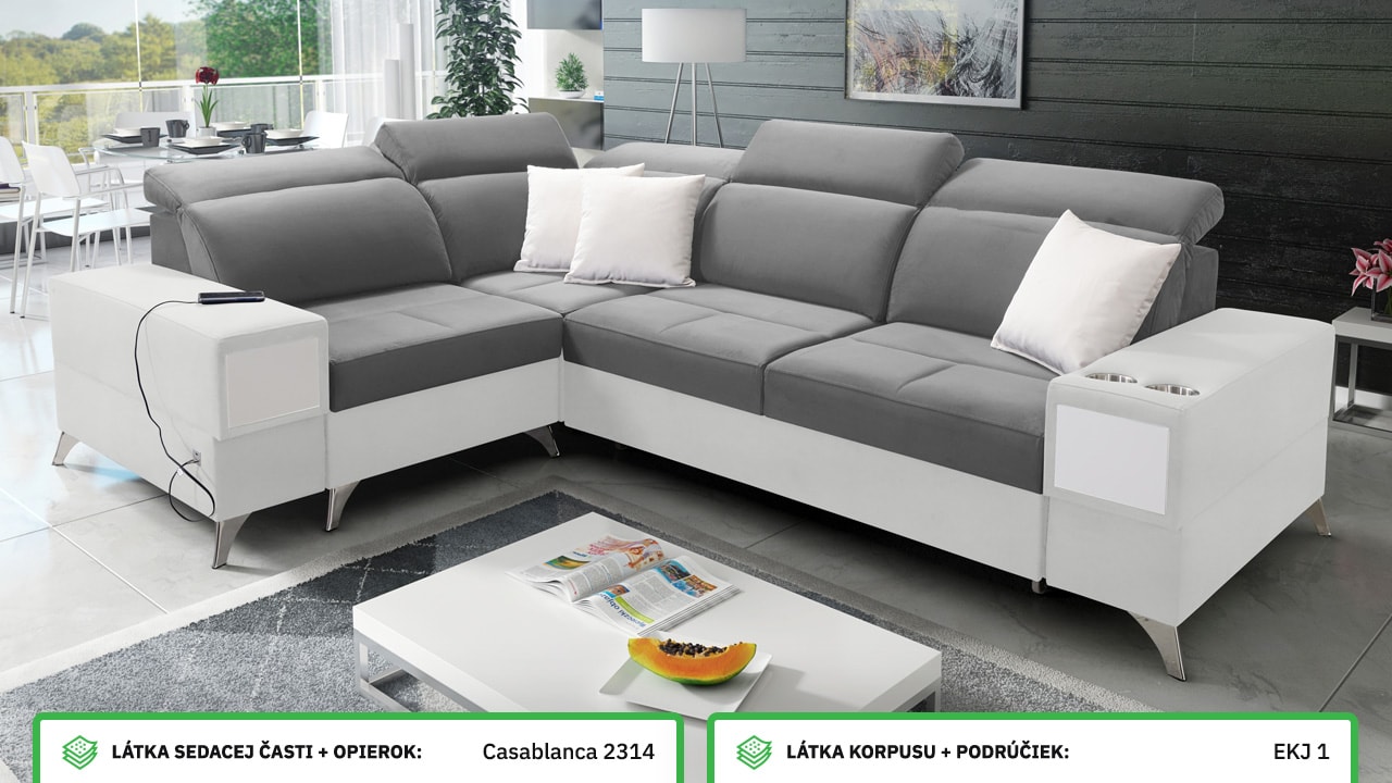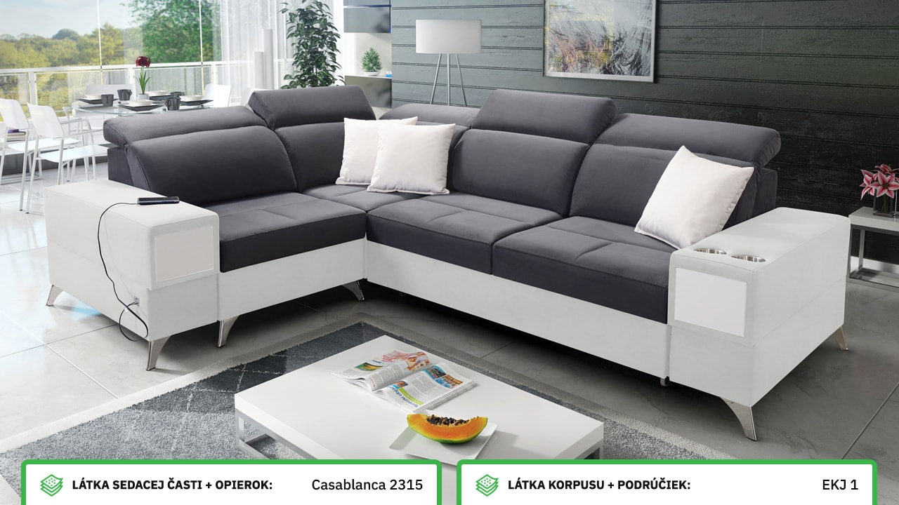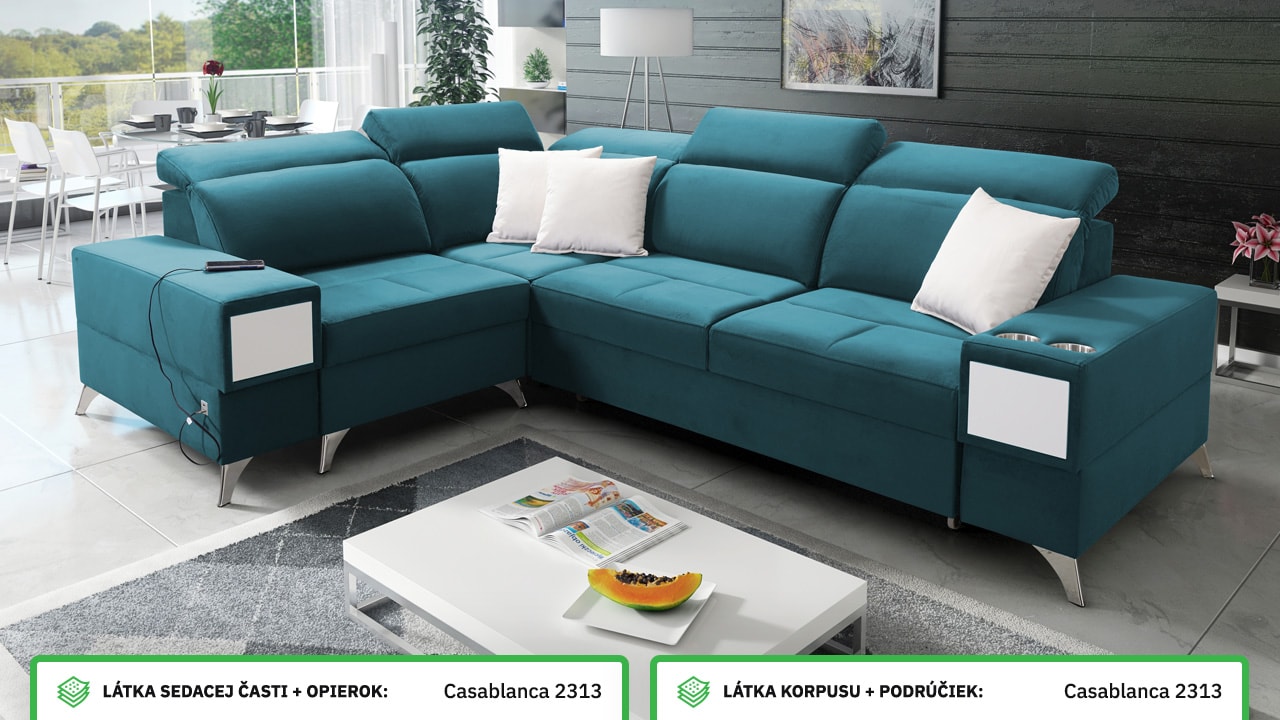 V našom konfigurátore si veľmi jednoducho nadizajnujete vašu novú sedačku. Najprv vás čaká výber rohu, a potom si zvolíte požadovanú poťahovú látku sedacej časti a korpusu. V posledných krokoch si vyberáte vzor vankúšov, typ doplnkov a nožičiek. Celý konfigurátor je dostatočne prehľadný, aby ste si svoju novú sedaciu súpravu navrhli presne podľa vašich predstáv.