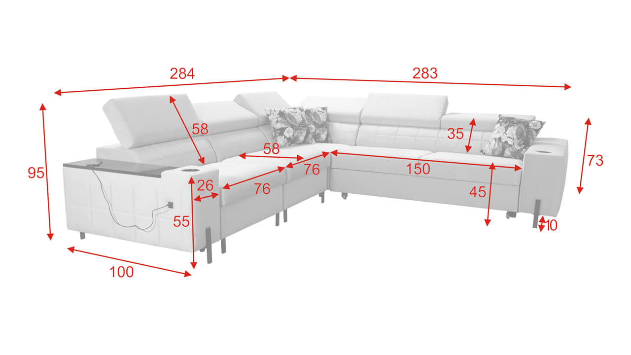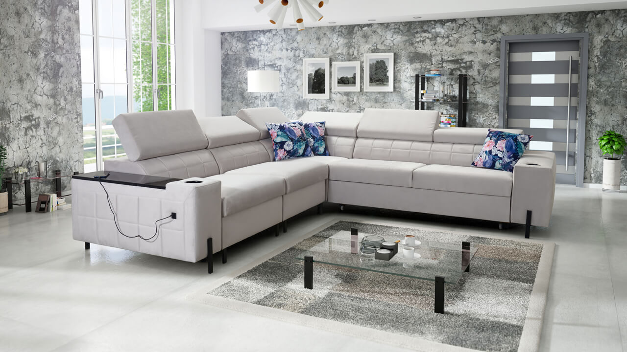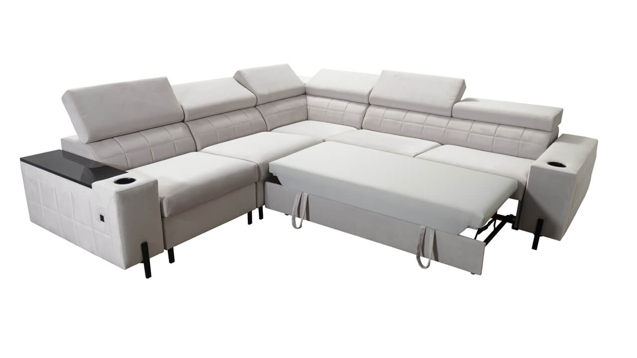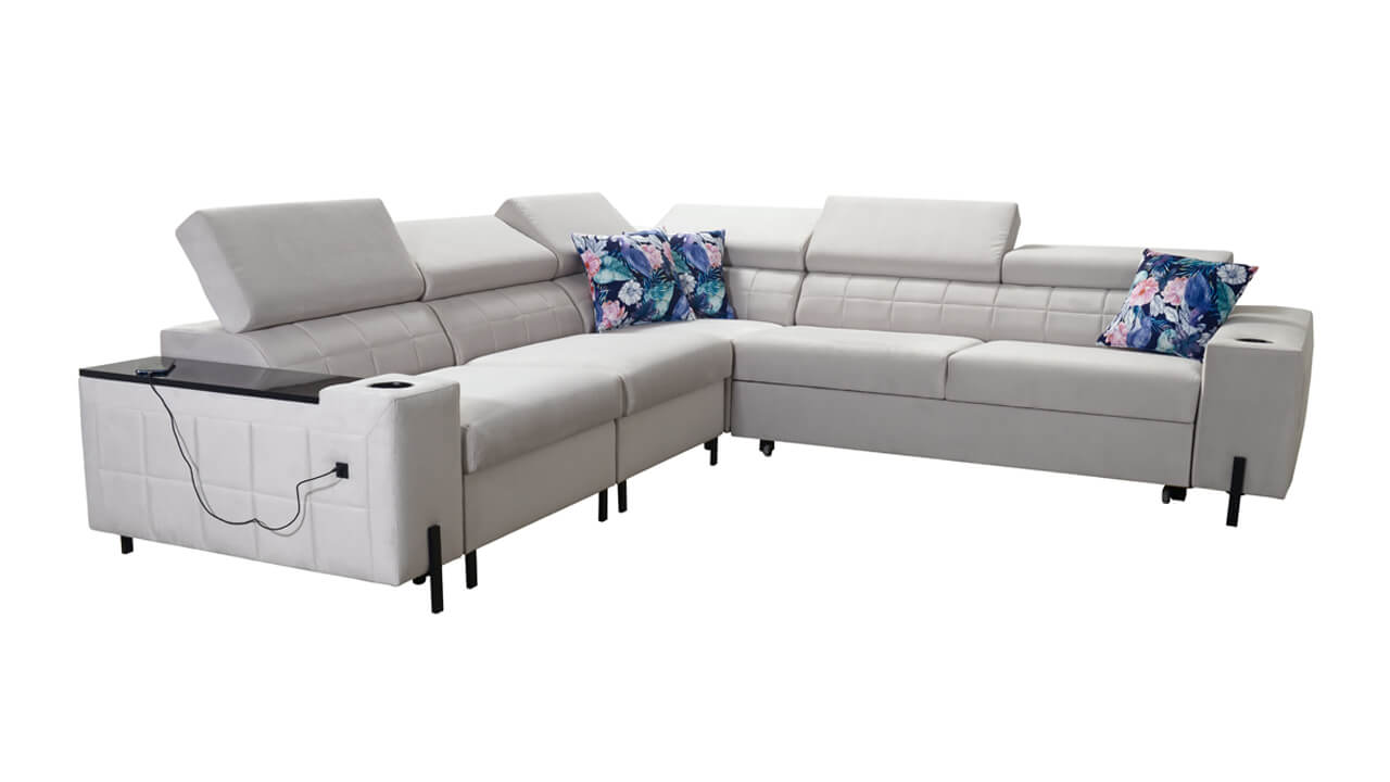 Pri leňošení na rohovej sedačke GABIIO IV budete mať všetko potrebné vždy po ruke: pohár s drinkom si môžete odložiť do držiaku na poháre, po obľúbené maškrty sa stačí načiahnuť do vstavaného minibaru a vybitý mobil môžete pohodlne zapojiť do zabudovaného USB portu. Páčil by sa vám takýto komfort? Vylepšia ho aj nastaviteľné opierky hlavy a možnosť rozloženia pre príležitostné spanie či polihovanie po náročnom dni.