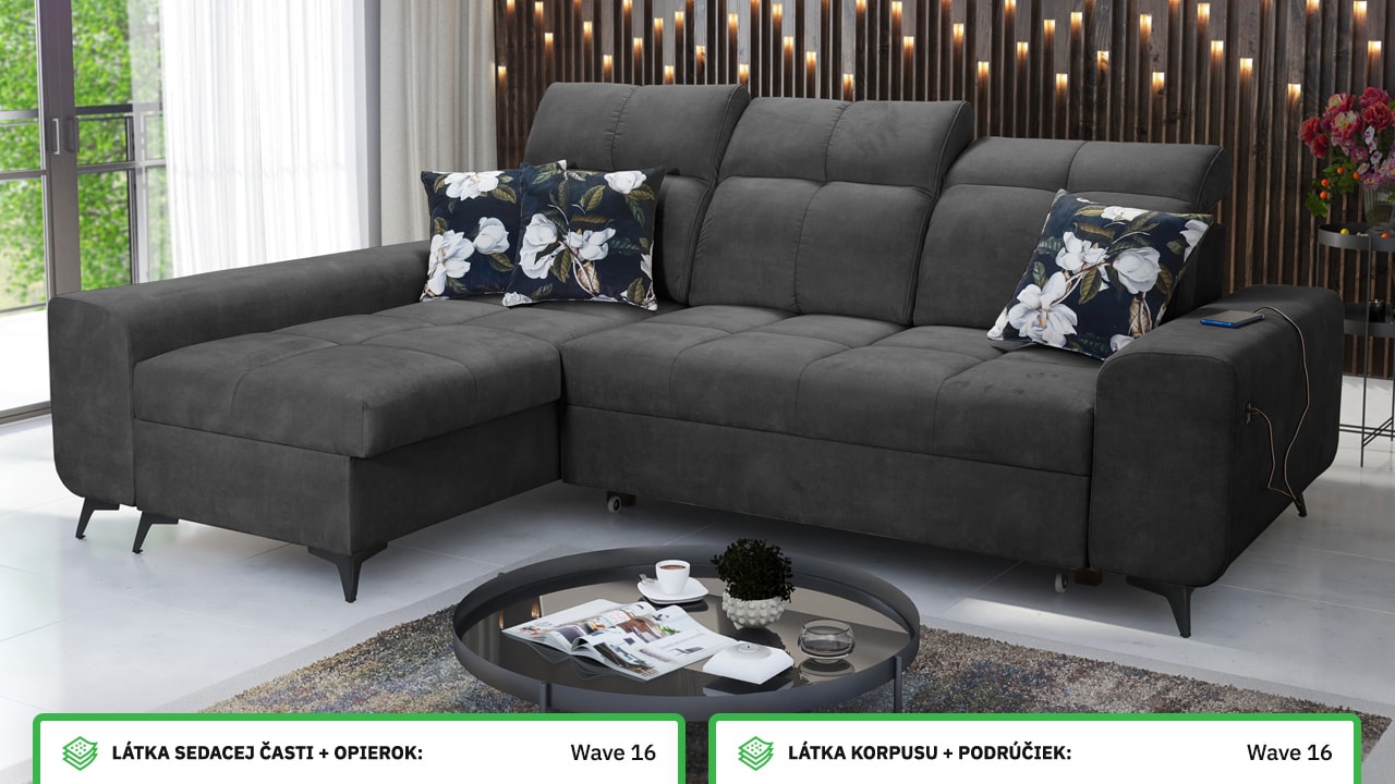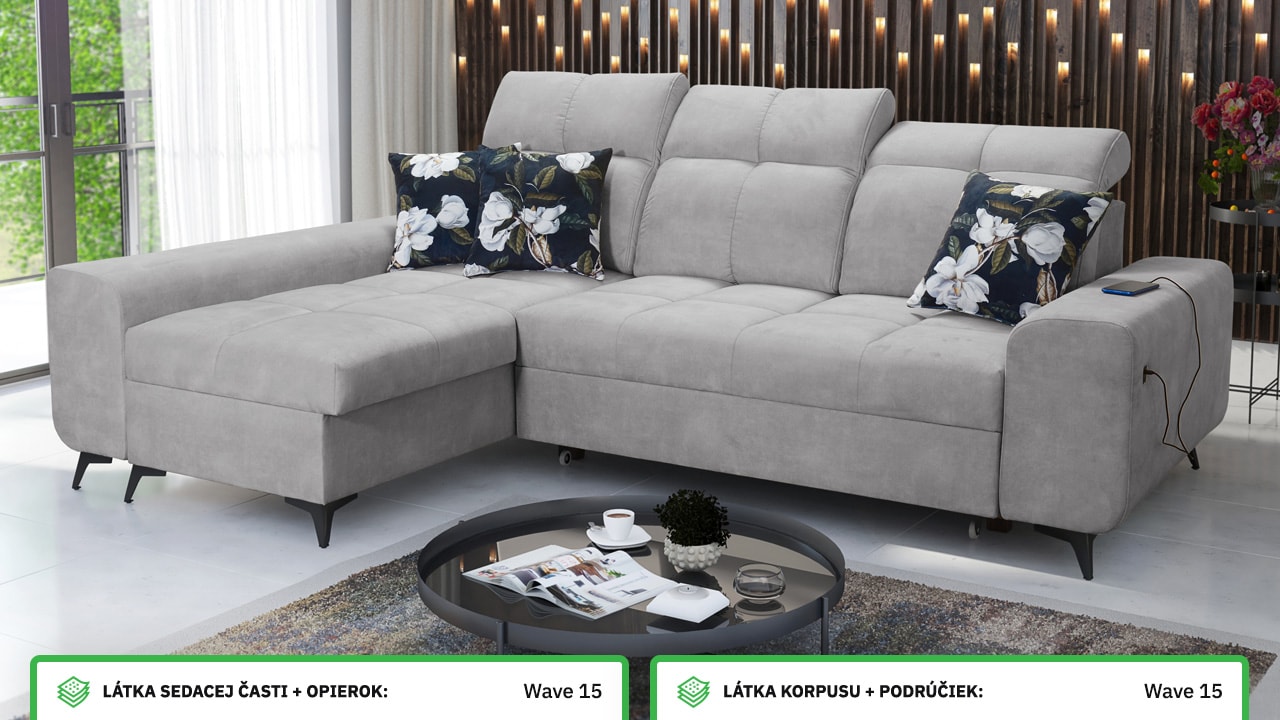 V našom konfigurátore si veľmi jednoducho nadizajnujete vašu novú sedačku. Najprv vás čaká výber rohu, a potom si zvolíte požadovanú poťahovú látku sedacej časti a korpusu. V posledných krokoch si vyberáte vzor vankúšov, typ doplnkov a nožičiek. Celý konfigurátor je dostatočne prehľadný, aby ste si svoju novú sedaciu súpravu navrhli presne podľa vašich predstáv.