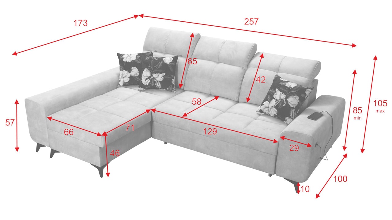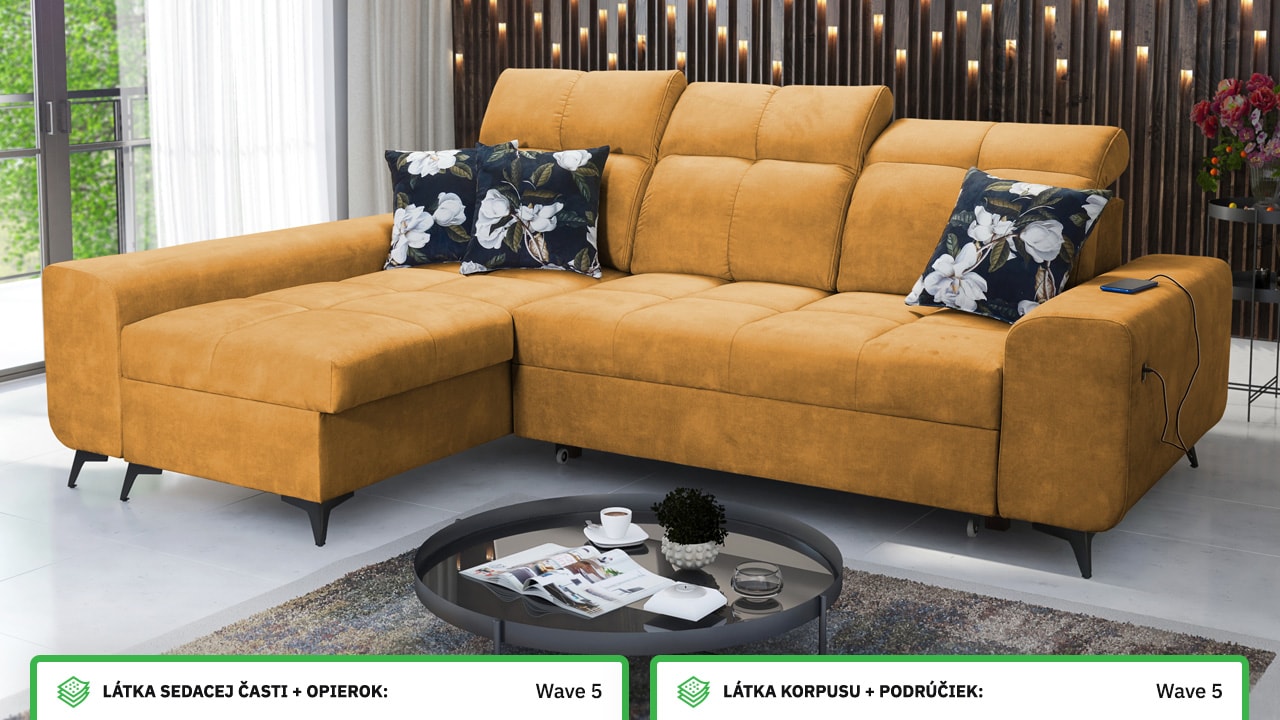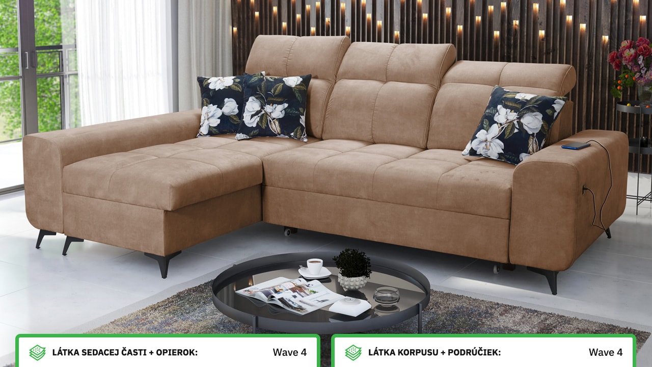 Najmenšia rohová sedačka z produktovej série GOLD sa hodí do menších obývačiek, kancelárií aj detských izieb. Napriek menším rozmerom vás prekvapí jej priestranné sedenie, veľká plocha na spanie po rozložení a dosť veľký úložný priestor. Bonusom sú polohovateľné opierky hlavy a zabudovaná USB nabíjacia stanica. Sedačku nie je možné vyrobiť v poťahoch Erie, Bristol a Bahama.