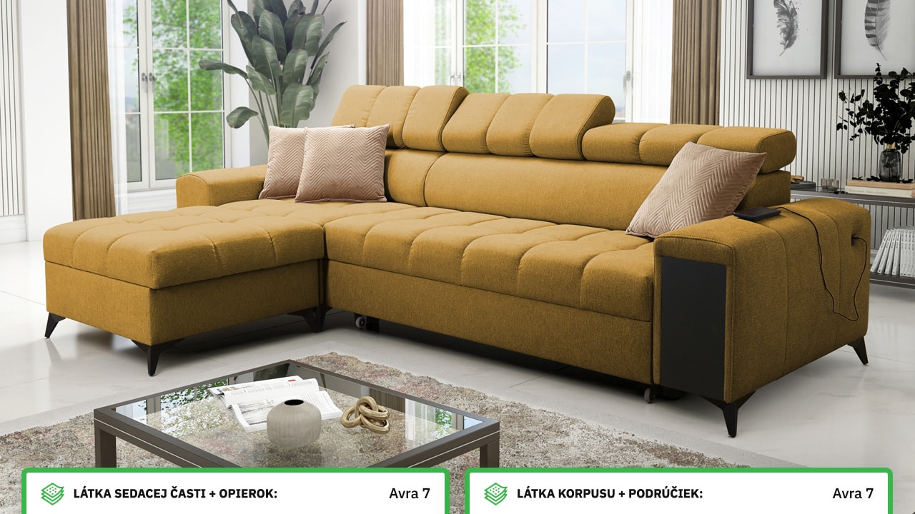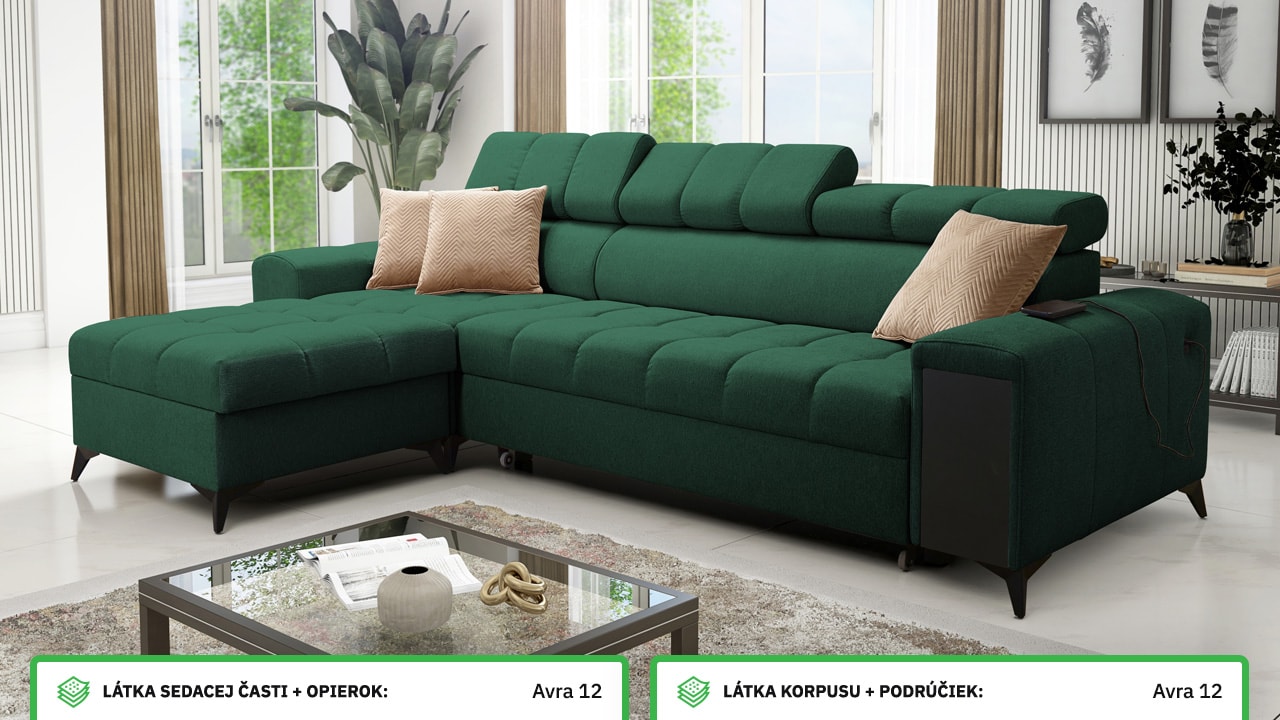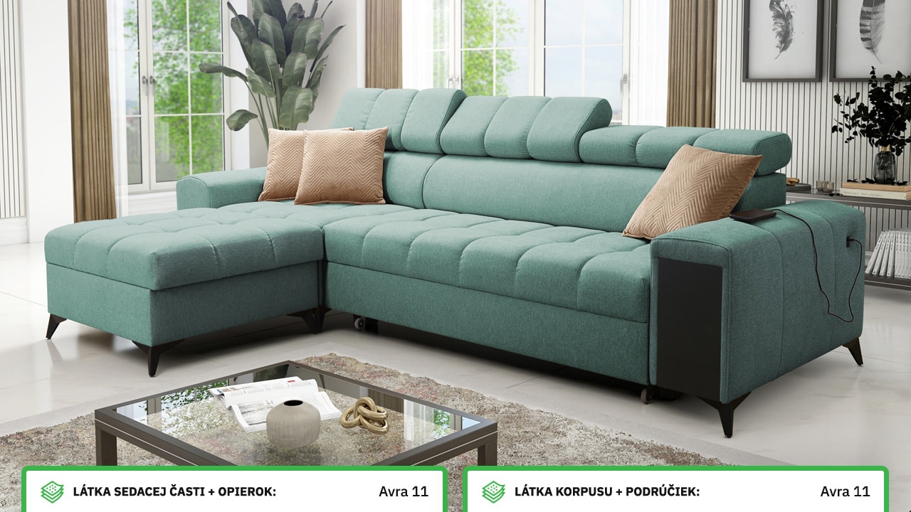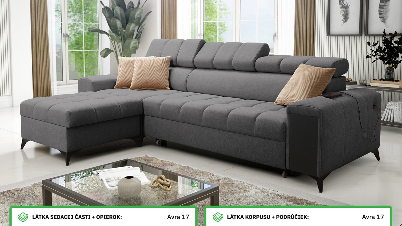 V našom konfigurátore si veľmi jednoducho nadizajnujete vašu novú sedačku. Najprv vás čaká výber rohu, a potom si zvolíte požadovanú poťahovú látku sedacej časti a korpusu. V posledných krokoch si vyberáte vzor vankúšov, typ doplnkov a nožičiek. Celý konfigurátor je dostatočne prehľadný, aby ste si svoju novú sedaciu súpravu navrhli presne podľa vašich predstáv.