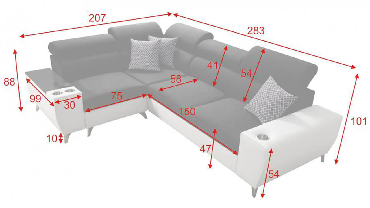 Vysoký štandard komfortu vám poskytne rohová sedačka Modio II. Okrem základných funkcií, ako je rozkladanie a menší úložný priestor, má táto rohová sedačka aj vstavaný minibar, držiaky na poháre a polohovateľné opierky hlavy. Farbu poťahu, typ nožičiek a orientáciu rohu si môžete zvoliť sami.