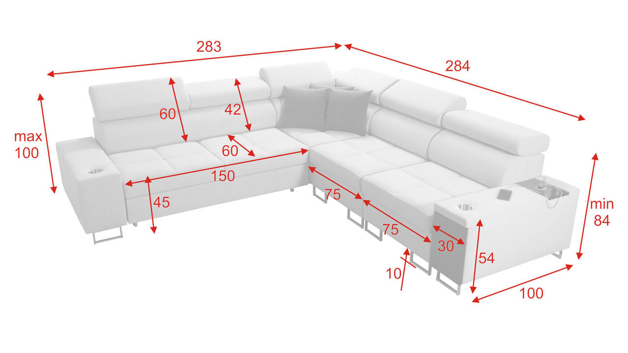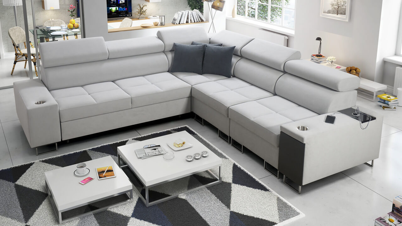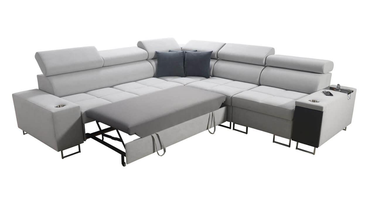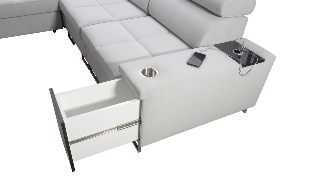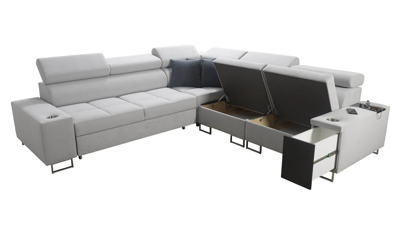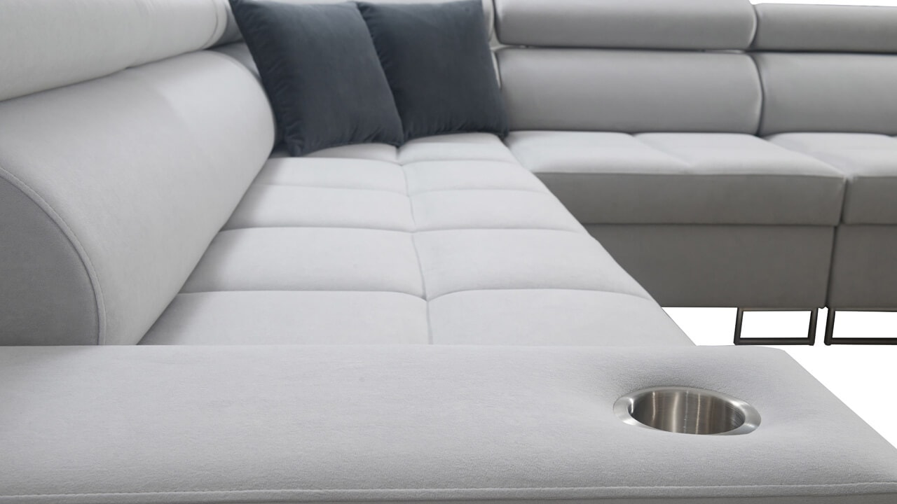 Veľmi kvalitne spracovaná rohová sedačka Murena III sa svojím čistým dizajnom hodí do obývačiek ale aj kancelárií. Má veľmi pevnú vnútornú konštrukciu, vďaka ktorej sa nevysedí a dlhé roky vydrží ako nová. Je vybavená praktickými funkciami, ako je možnosť rozloženia, úložný priestor, vstavaný minibar, polohovateľné opierky hlavy a nabíjacia stanica.