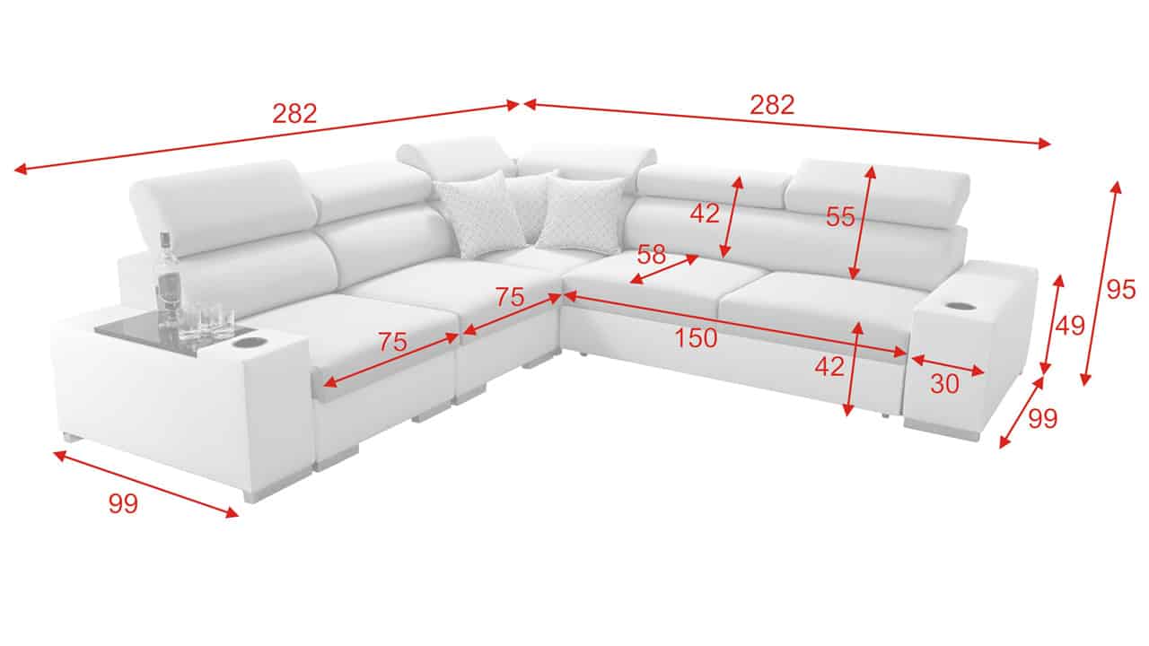 Mimoriadne pohodlná rohová sedačka, ktorá vás prekvapí svojimi modernými vychytávkami. Okrem nastaviteľných opierok hlavy má zabudovaný bar, spolu s držiakmi na poháre a doskou. Farebne si sedačku môžete nakombinovať podľa seba.