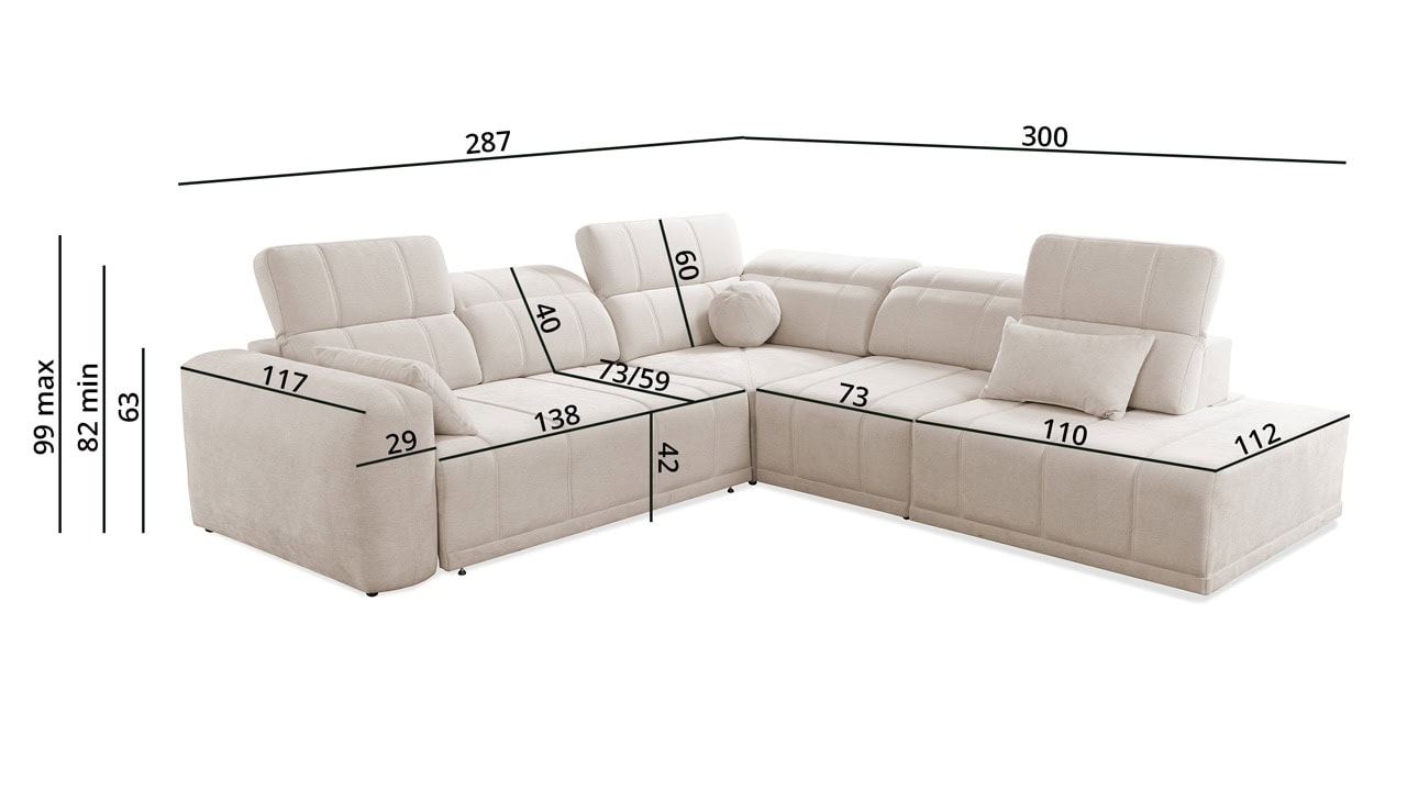 Pohodlie na najvyššej úrovni vám prinesie naša rohová sedačka Raveli IX. Komfortné sedenie, nastaviteľné opierky hlavy a posúvateľná chrbtová opierka potešia aj tých najnáročnejších. Sedačka je vyrobená z kvalitných materiálov. Disponuje tiež praktickým úložným priestorom a po rozložení sa premení na pohodlné lôžko pre príležitostné prespatie. Potiahneme vám ju akýmkoľvek materiálom z nášho vzorkovníka. Nádherne vynikne v prírodných farbách, napríklad zemitej hnedej či sivej.