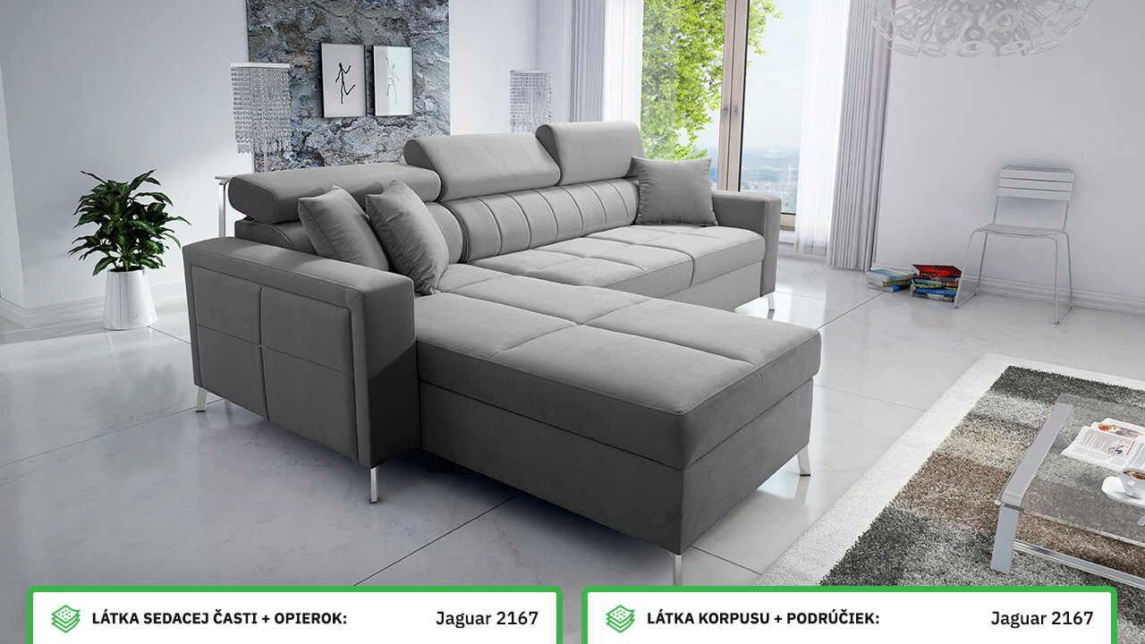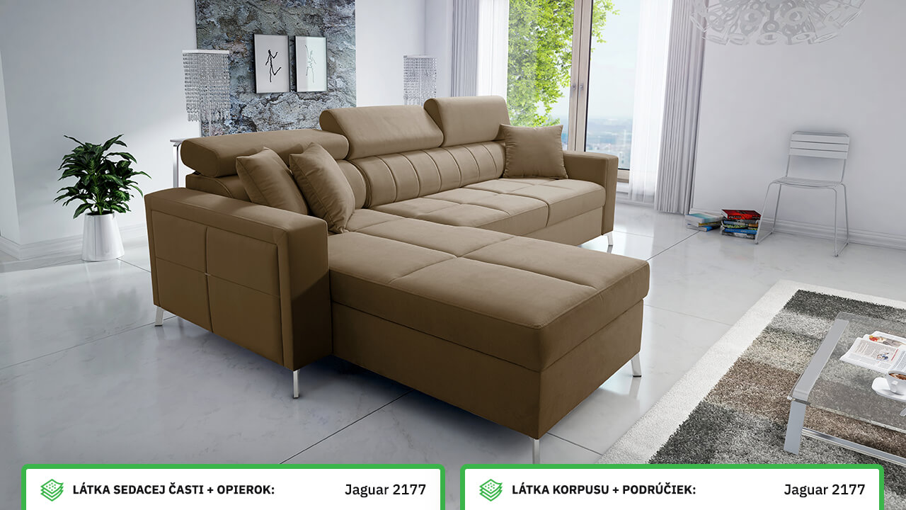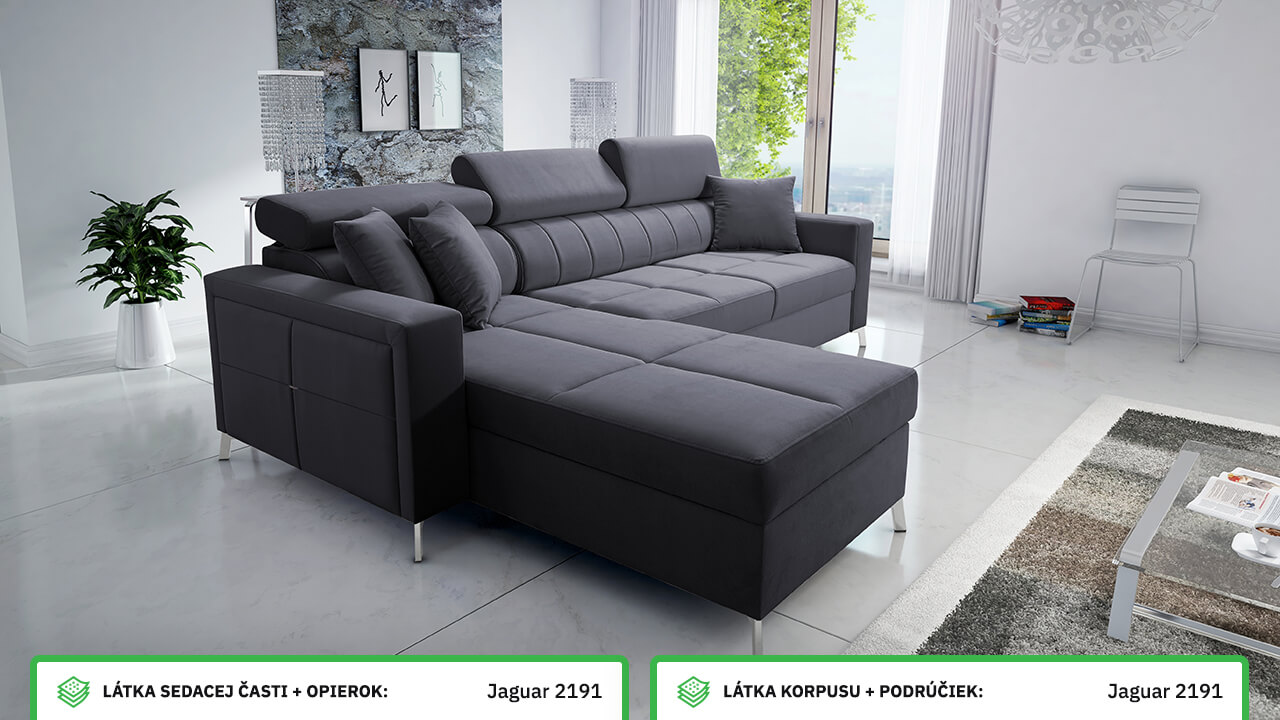 V našom konfigurátore si veľmi jednoducho nadizajnujete vašu novú sedačku. Najprv vás čaká výber rohu, a potom si zvolíte požadovanú poťahovú látku sedacej časti a korpusu. V posledných krokoch si vyberáte vzor vankúšov, typ doplnkov a nožičiek. Celý konfigurátor je dostatočne prehľadný, aby ste si svoju novú sedaciu súpravu navrhli presne podľa vašich predstáv.