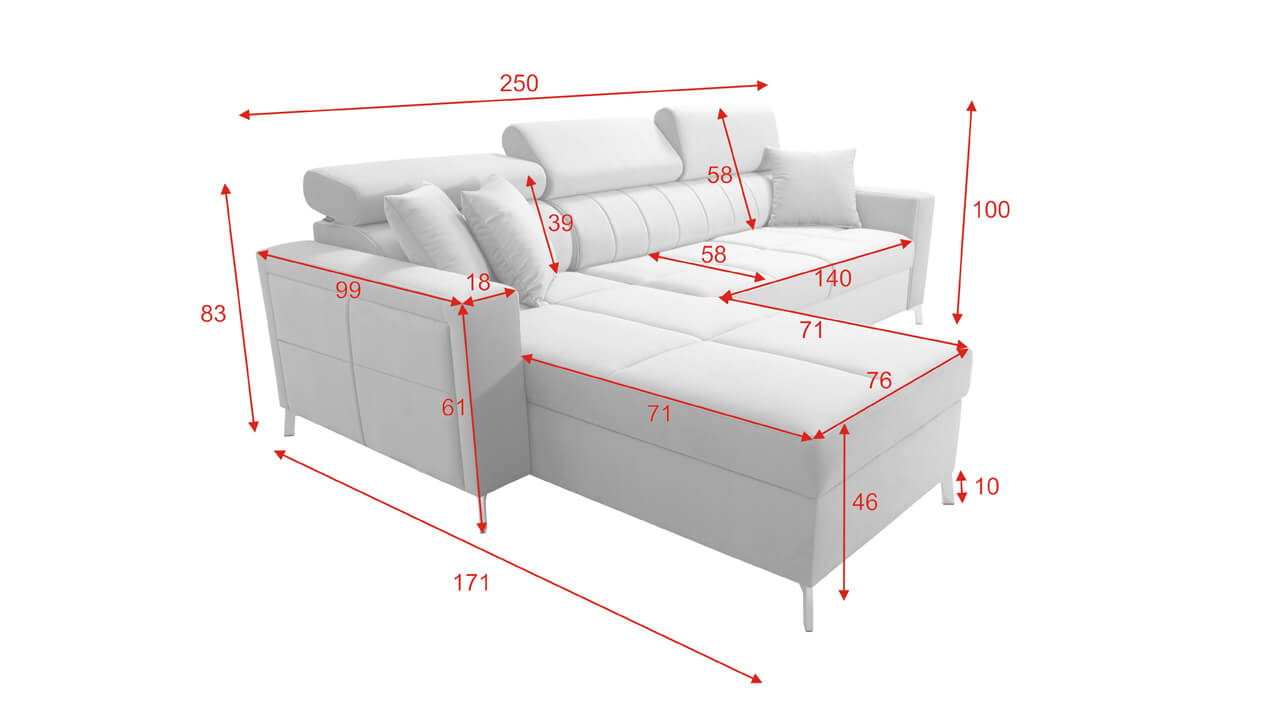 Máte radi jednoduchosť? Táto pohodlná a praktická rohová sedačka splní vaše očakávania. Jej nezvyčajné šitie pôsobí ako nenápadný, ale štýlový dizajnový prvok, ktorý jej dodáva jemný nádych elegancie. Okrem čistého dizajnu vás určite poteší aj maximálne pohodlné sedenie a kvalita prevedenia. Je vyrobená z odolných materiálov, ktoré zaručia, že sa sedačka rýchlo nevysedí a dlho ostane ako nová. Prezrite si vizualizácie a nechajte sa inšpirovať niektorým z farebných prevedení.