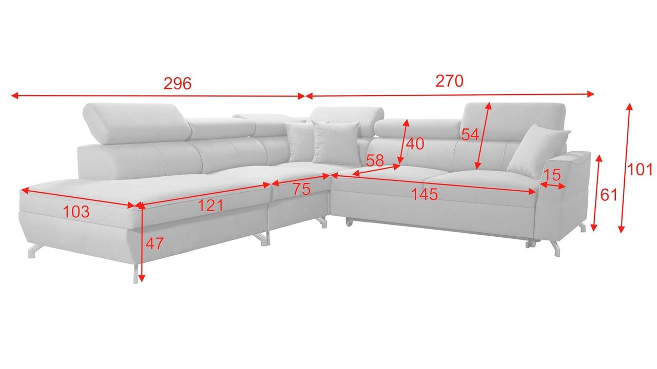 Pokiaľ hľadáte spojenie pohodlia a moderného dizajnu, rohová sedačka Vento VIII splní všetky vaše očakávania. Má nastaviteľné opierky hlavy, ležérne sedenie a taktiež veľký úložný priestor. Krásne vynikne aj v krikľavejších a odvážnejších farbách.