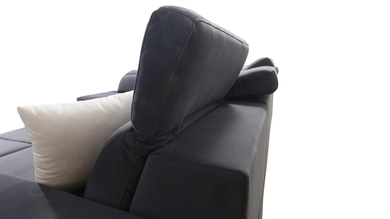 Táto veľmi veľká a priestranná sedacia súprava do tvaru U pohodlne usadí celú vašu rodinu. Je vhodná do viacčlennej domácnosti, kde si na nej všetci spolu oddýchnu a poleňošia. Má nastaviteľné opierky hlavy, USB porty na nabíjanie, vstavaný šuplík v bočnej opierke a úložný priestor rozdelený až do troch častí. Po rozložení poskytne naozaj veľkú spaciu plochu. Typ nožičiek, farbu poťahovej látky aj dizajn šuplíku si môžete nakonfigurovať sami podľa svojich predstáv.