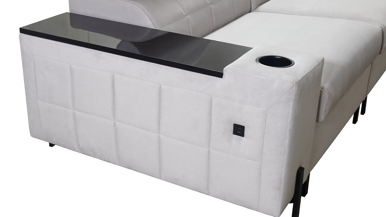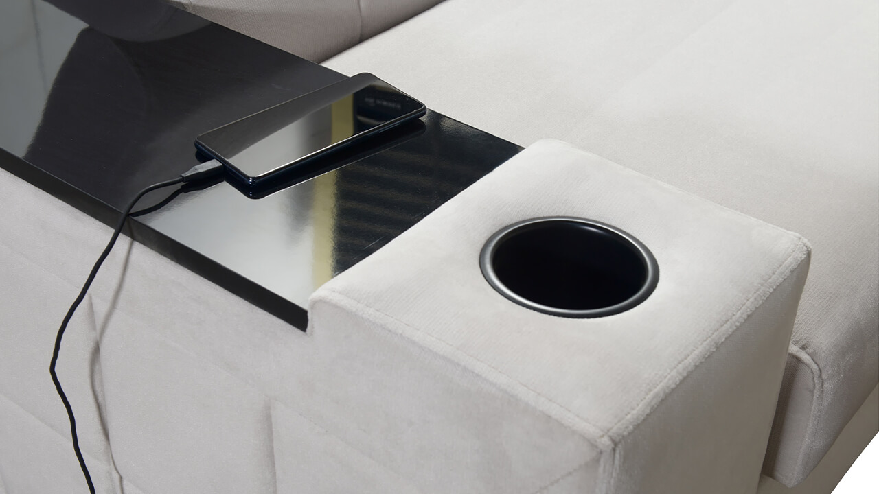 Tak pohodlná a praktická sedačka, že sa z nej už nebudete chcieť postaviť. Pohodlie vám zaručia nastaviteľné opierky hlavy, príjemný poťahový materiál a pohodlné sedenie. Pri leňošení však určite oceníte aj ďalšie moderné vychytávky tejto sedačky: poháre bezpečne „podržia“ držiaky na poháre, o vybitý mobil sa postarajú nabíjacie USB porty a skrýšu na vaše obľúbené maškrty vždy poskytne vstavaný minibar. Čo viac treba? Stačí si vyložiť nohy a relaxovať.