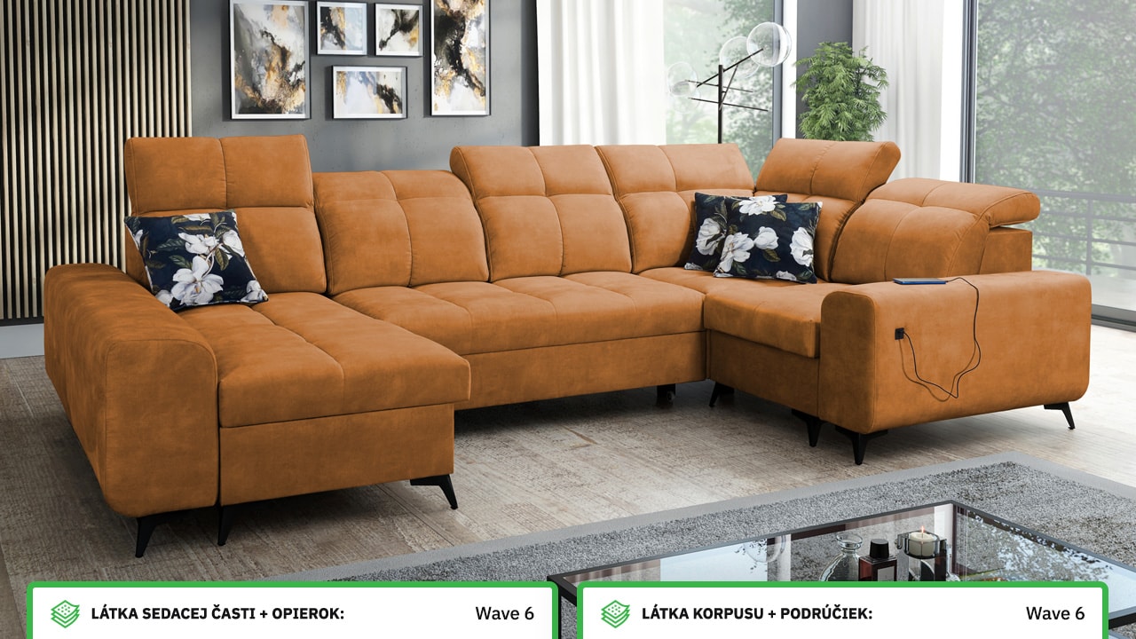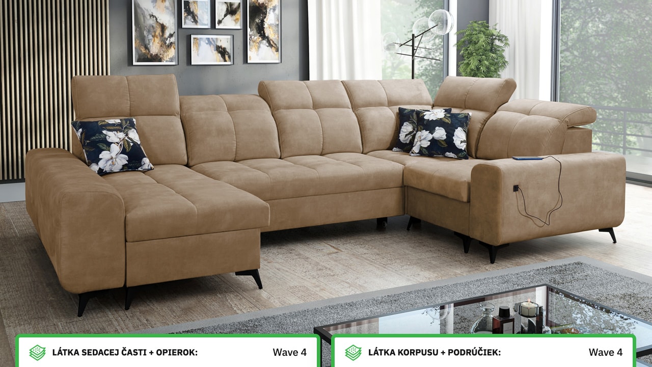 Vneste do svojho domova štipku elegancie s účkovou sedačkou GOLD IV. Môžete si ju vybrať v poťahu presne podľa svojho vkusu. Nádherne vynikne v zemitých, tmavých ale aj žiarivých farbách. Okrem toho vás prekvapí svojou pohodlnosťou, nastaviteľnými opierkami hlavy, veľkým úložným priestorom či priestrannou spacou plochou po rozložení. Je to multifunkčný kúsok, ktorý vám vďaka pevnej konštrukcii roky vydrží ako nový. Sedačku nie je možné vyrobiť v poťahoch Erie, Bristol a Bahama.