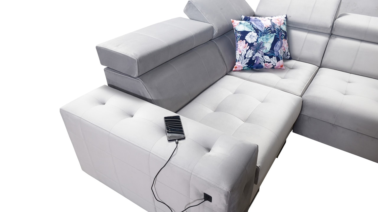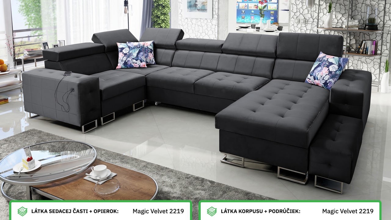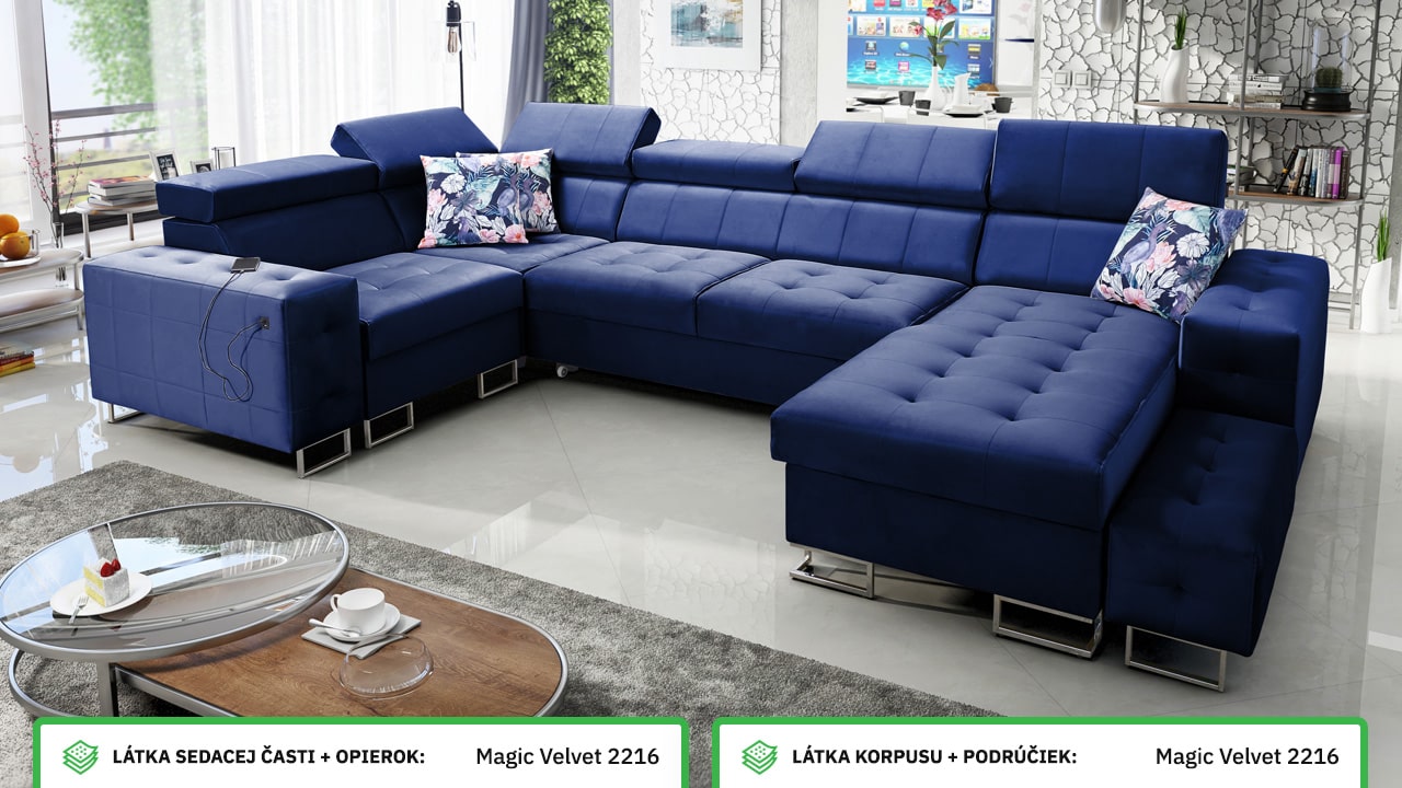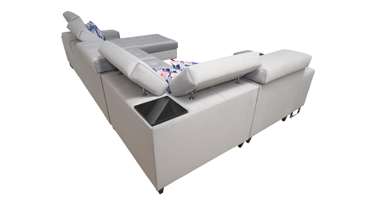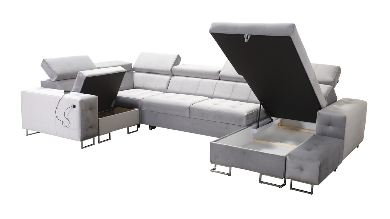 Kvalita, pohodlie aj štýl – táto sedačka do tvaru U vyniká vo všetkých aspektoch. Jej precízne vyhotovená konštrukcia zaručuje vysokú kvalitu a odolnosť, čo z nej robí dlhodobú investíciu. Sedenie je pevné a pohodlné, maximálny komfort dotvoria polohovateľné opierky hlavy. Výhodou je aj možnosť rozloženia, úložný priestor, vstavaný USB port a taburet zdarma. Na sedačku si môžete sami vybrať poťah a farbu podľa vášho vkusu.