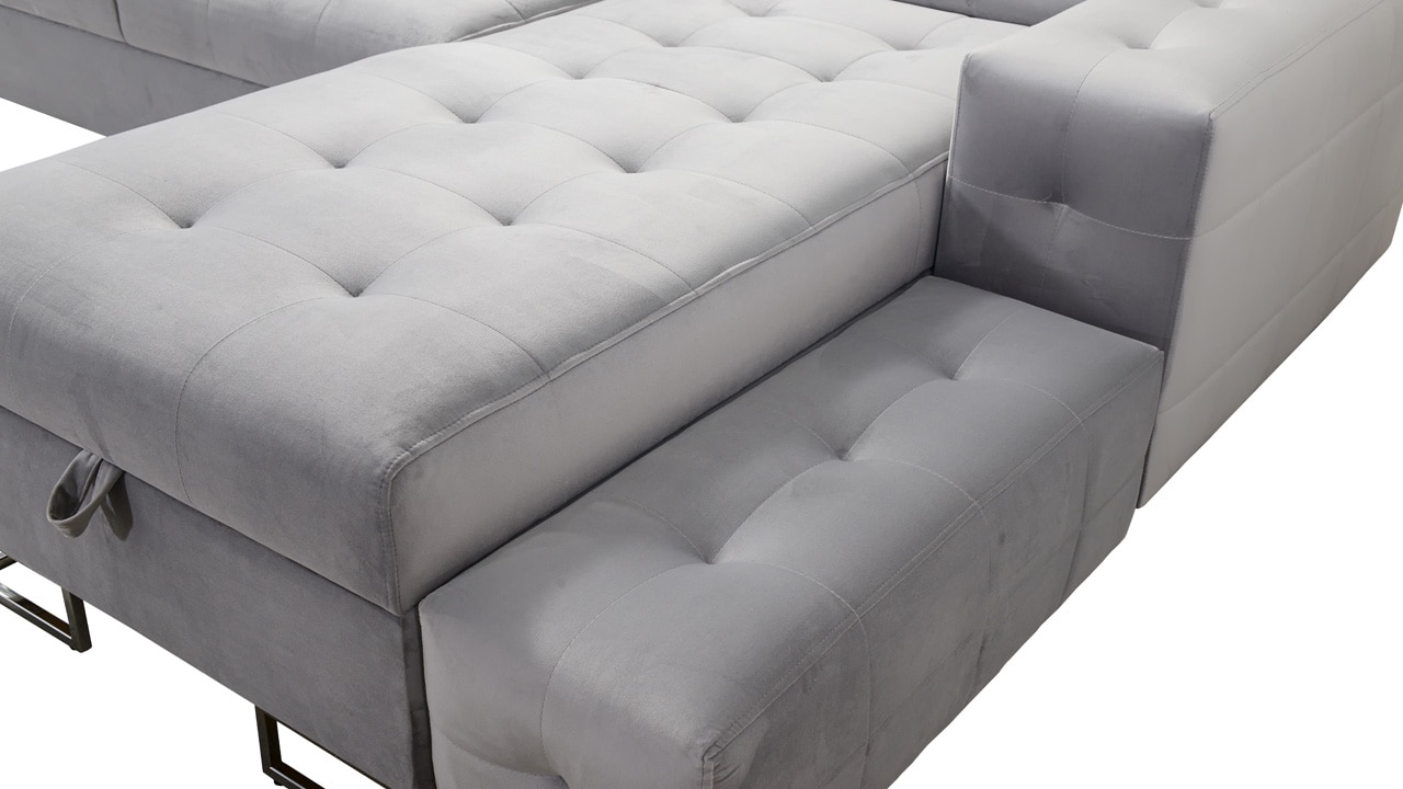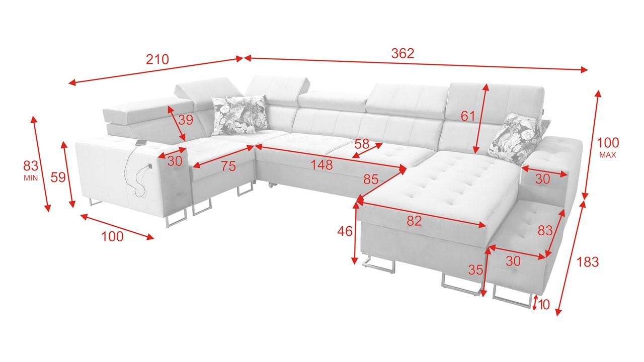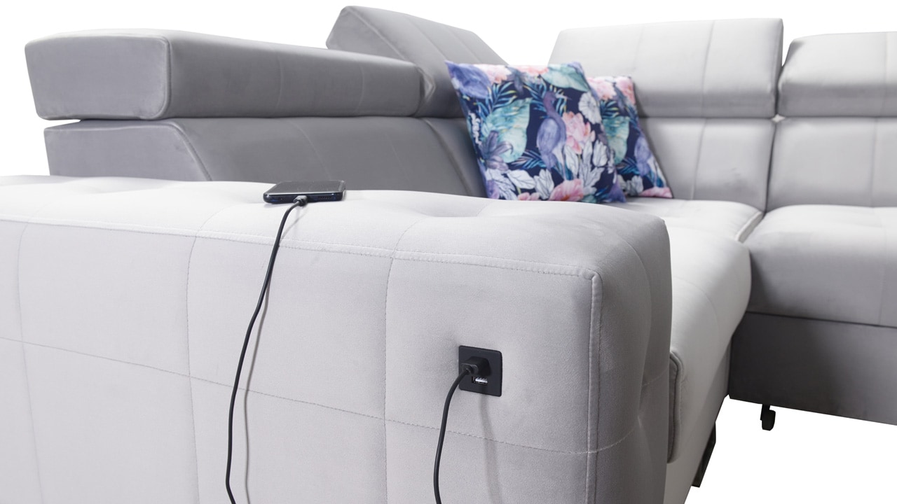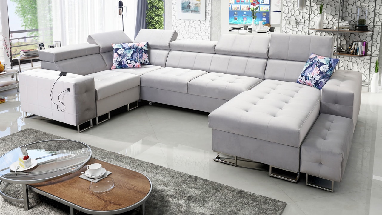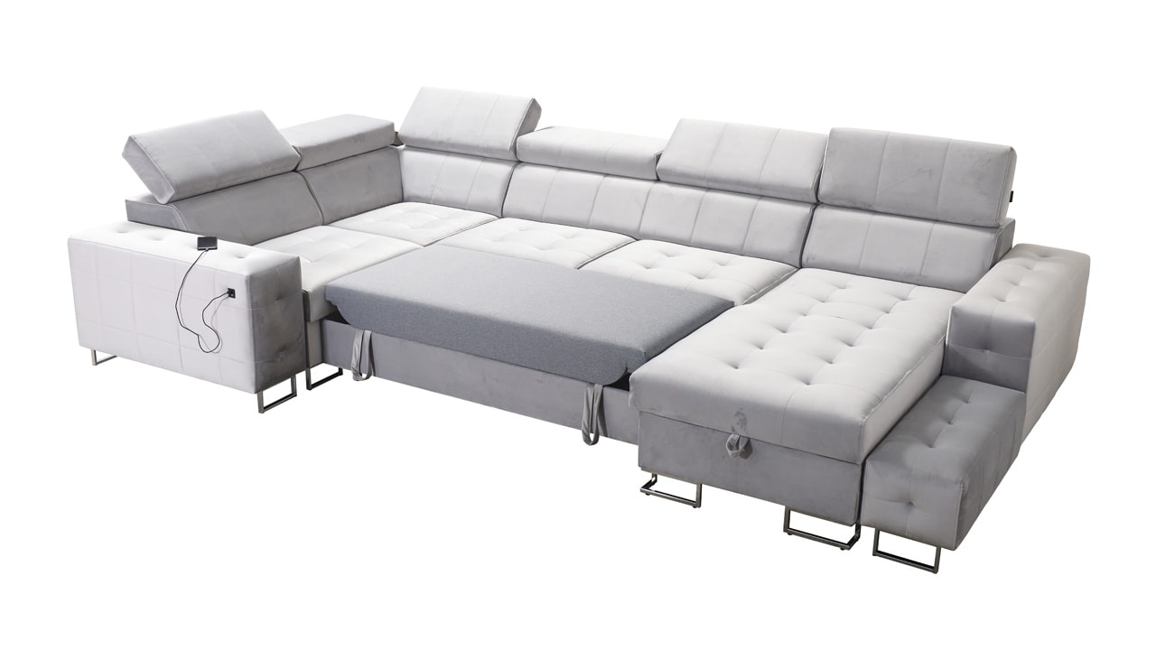 Kvalita, pohodlie aj štýl – táto sedačka do tvaru U vyniká vo všetkých aspektoch. Jej precízne vyhotovená konštrukcia zaručuje vysokú kvalitu a odolnosť, čo z nej robí dlhodobú investíciu. Sedenie je pevné a pohodlné, maximálny komfort dotvoria polohovateľné opierky hlavy. Výhodou je aj možnosť rozloženia, úložný priestor, vstavaný USB port a taburet zdarma. Na sedačku si môžete sami vybrať poťah a farbu podľa vášho vkusu.