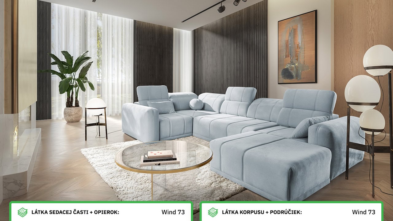 Vytvorte si v obývačke priestor na zábavu a oddych s našou sedačkou v tvare U. Sedačka je vyrobená z kvalitných materiálov a ponúkne vám praktický úložný priestor či možnosť rozkladania. Pohodlie pri sedení zvyšuje posúvateľná opierka chrbta a polohovateľné opierky hlavy. Na pohľad vás očarí vás zaujímavým detailom šitia i moderným dizajnom. Strávite na nej príjemné chvíle s rodinou či priateľmi pri filme, rozhovore alebo spoločenských hrách.