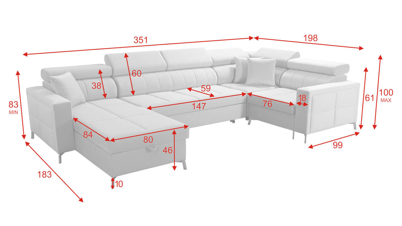 Priestranná U sedacia súprava Siide V Maxi je jednou z najväčších sedacích súprav, aké v našom e-shope máme. Ponúkne vám množstvo miesta na sedenie, leňošenie, a dokonca aj na príležitostné spanie. Pri oddychu určite oceníte polohovateľné opierky hlavy, vďaka ktorým si sklon sedenia nastavíte podľa svojho pohodlia. Výhodou tejto sedačky je tiež veľký úložný priestor a možnosť výberu farby a typu poťahovej látky podľa vášho vkusu.