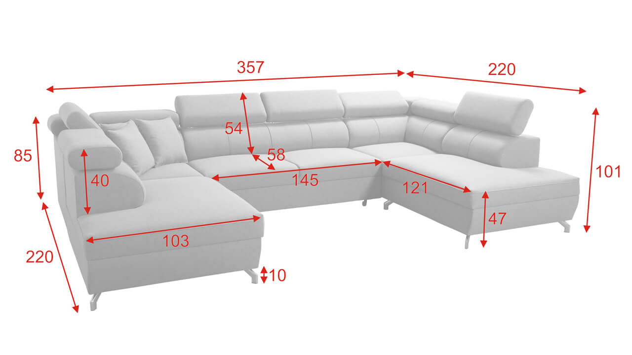Skutočne rozľahlá a priestranná sedacia súprava do U Vento X má polohovateľné opierky hlavy a veľmi príjemný poťah. Všimnite si aj zaujímavý dizajn nožičiek, ktoré sedačke dodajú zaujímavý ráz a opticky zväčšia celú obývačku. So sedačkou získate aj veľký úložný priestor a vankúše v cene.
