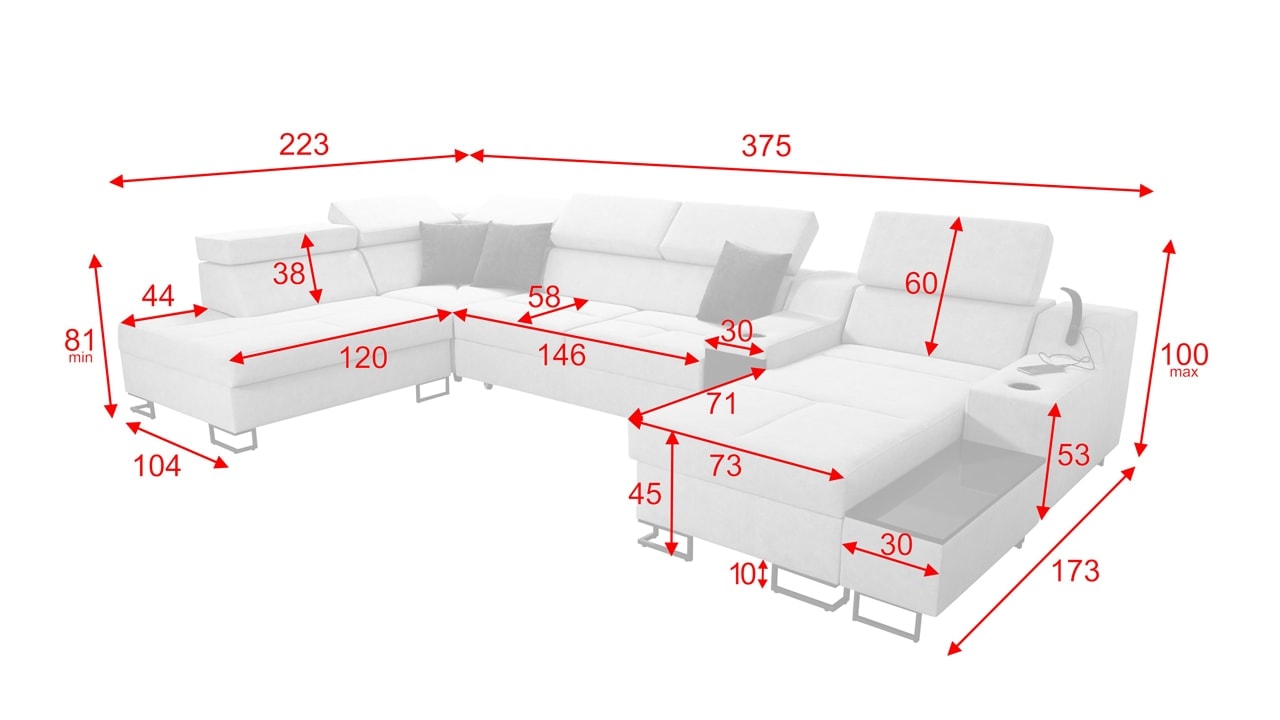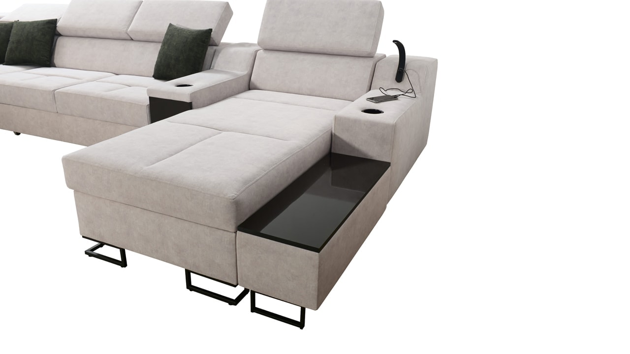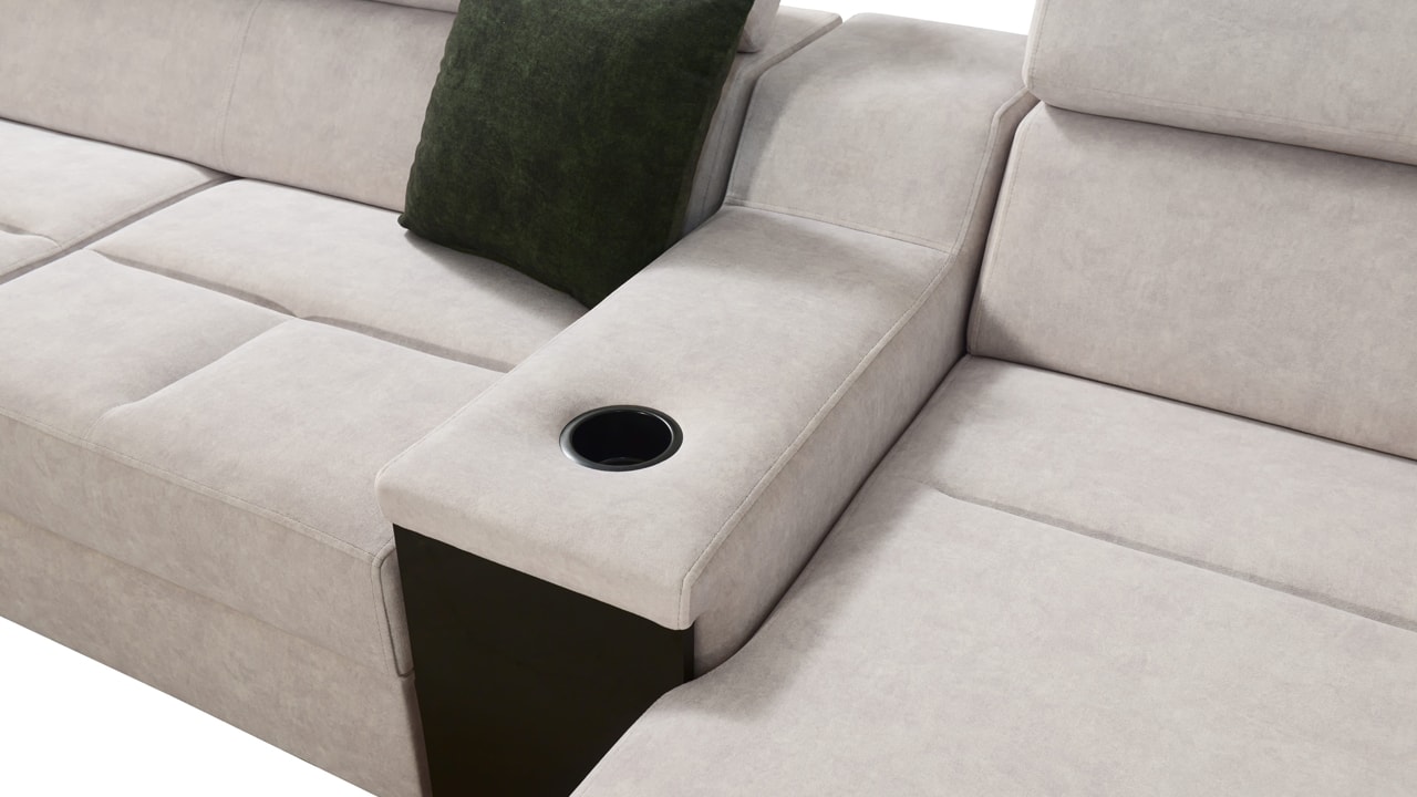 Hľadáte sedačku, na ktorej si po náročnom dni oddýchnete? Model Alicanto V je potom stvorený presne pre vás. Stačí si ľahnúť, prispôsobiť si opierky hlavy a relaxovať. Vždy po ruke budete mať nápoje v zabudovanom minibare, pohár si uložíte do vstavaných držiakov, mobil nabijete v nabíjačke a na knižku si posvietite lampičkou. Samozrejmosťou je možnosť rozloženia a veľký úložný priestor.